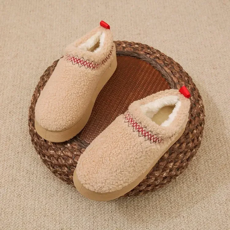 Snow Boots Women Winter New Cashmere Warm Thick Soles Without Heel-covered Hair Half Slipper Cotton Shoes Cashmere Warm Boots 22