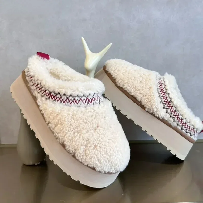 2024 Women Fur Slippers Ankle Boots Flats New Platform Short Plush Warm Flip Flops Cotton Shoes Designer Brand Winter Snow Botas