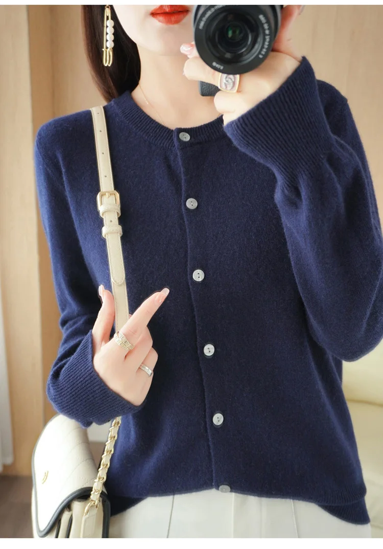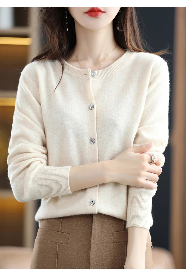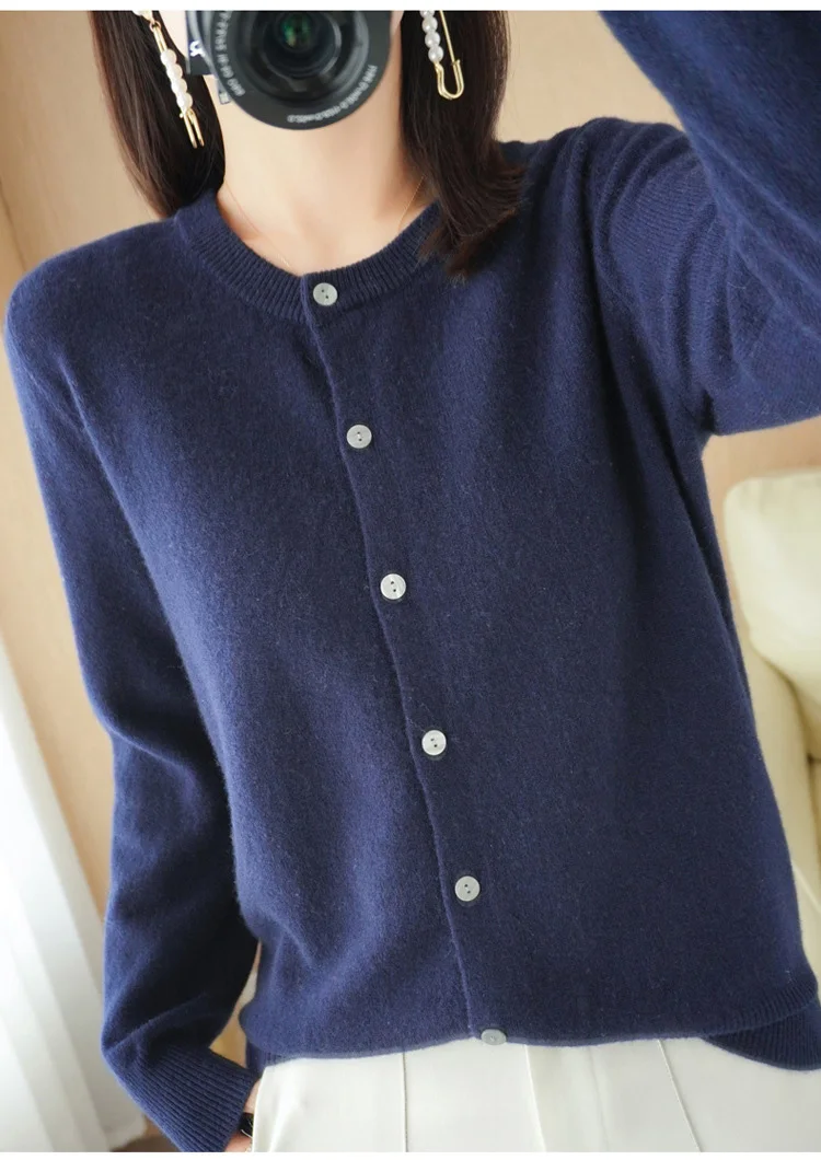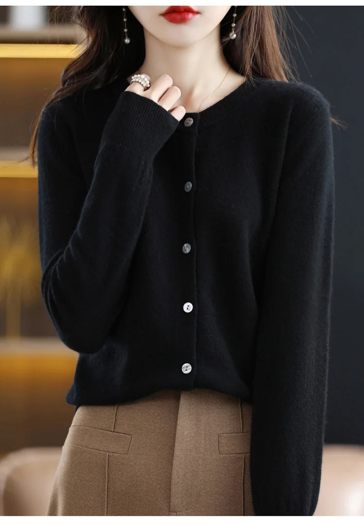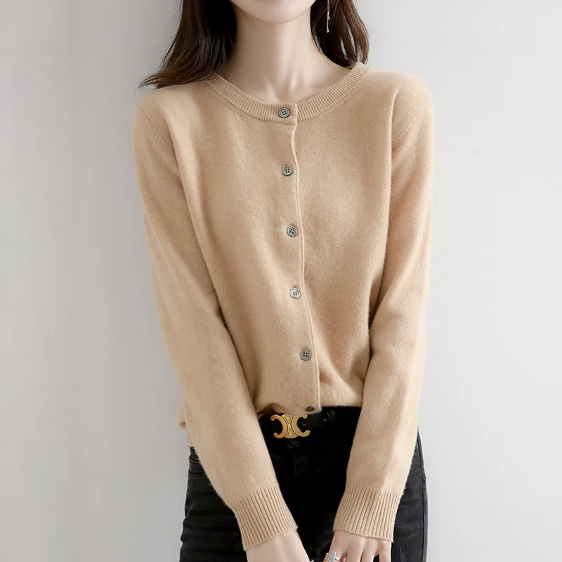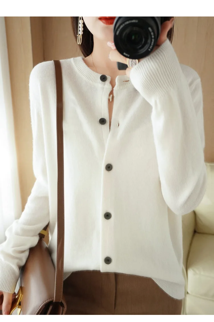 2024 Women Sweater Cardigans Autumn Soft Single Breasted O-neck Open Stitch Solid Basics Fine yarn Outwear knitted Coat