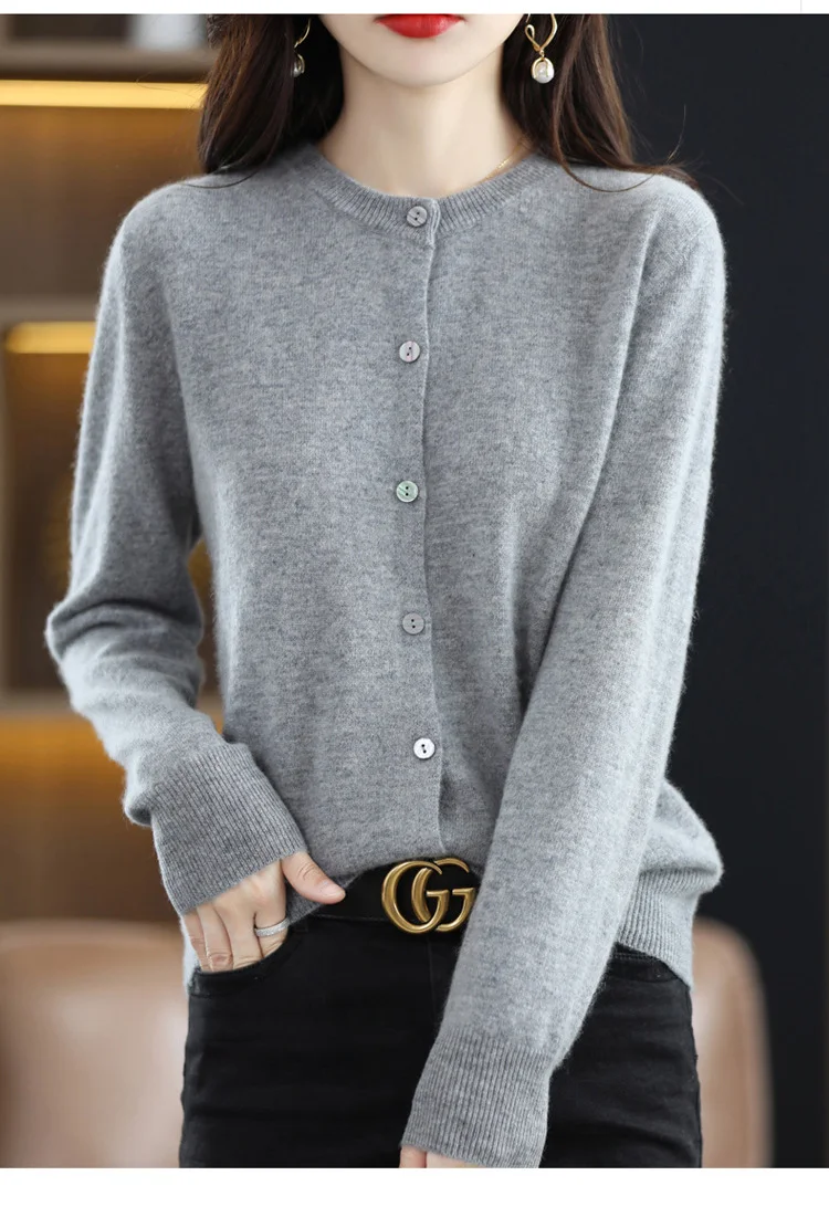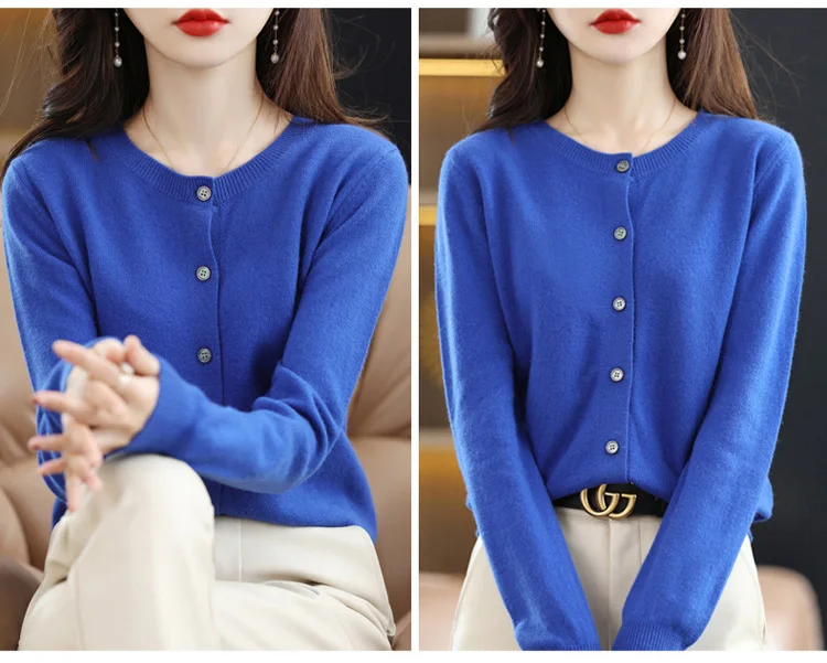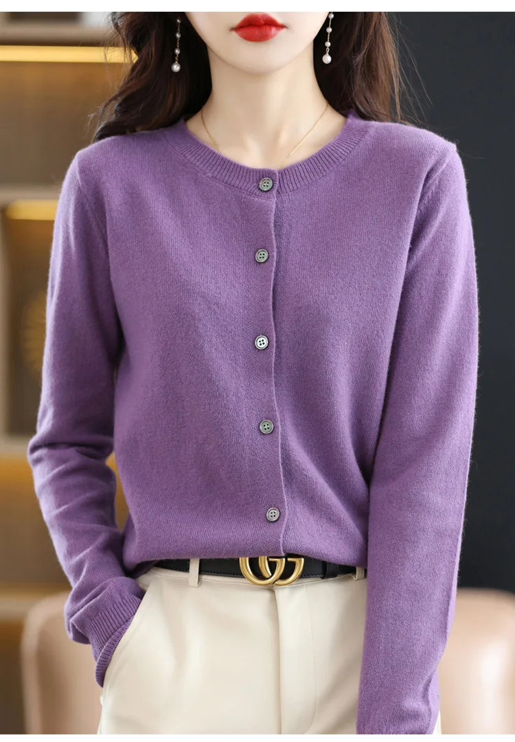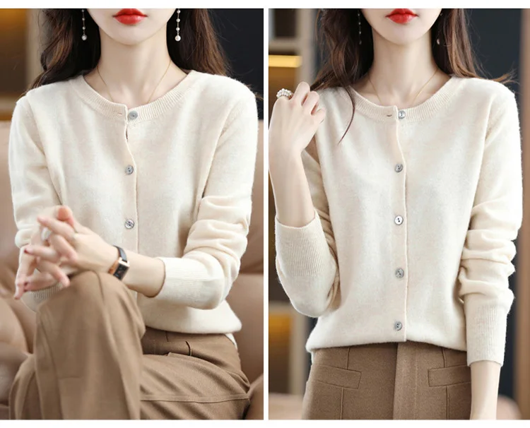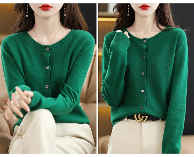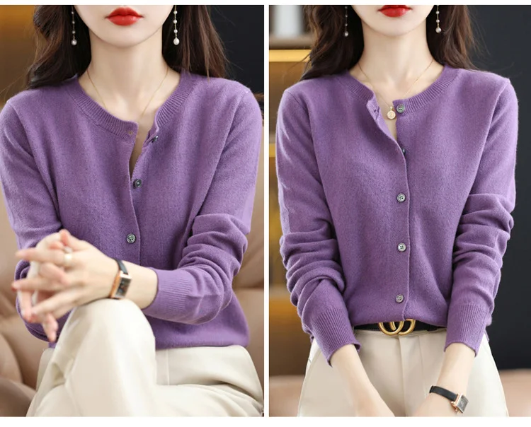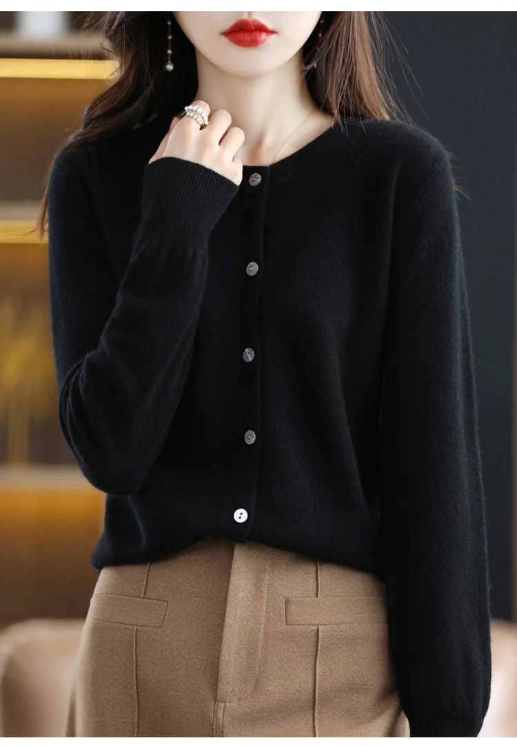 2024 Women Sweater Cardigans Autumn Soft Single Breasted O-neck Open Stitch Solid Basics Fine yarn Outwear knitted Coat
