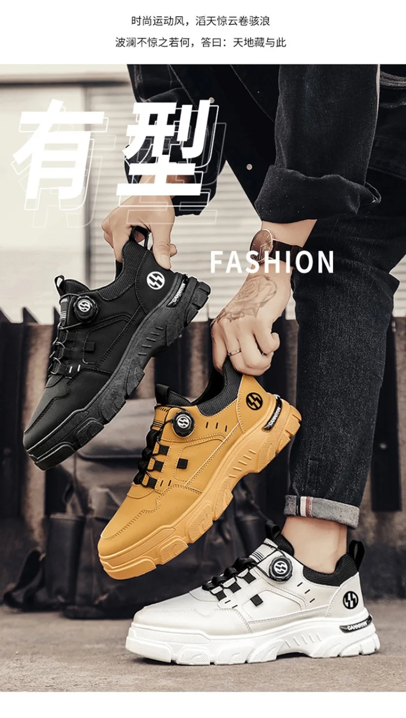 2024New Men’s Sneakers High-quality Leather Casual Shoes for Men Board Shoes Outdoor Non Slip Work Safety Shoe Zapatillas Hombre