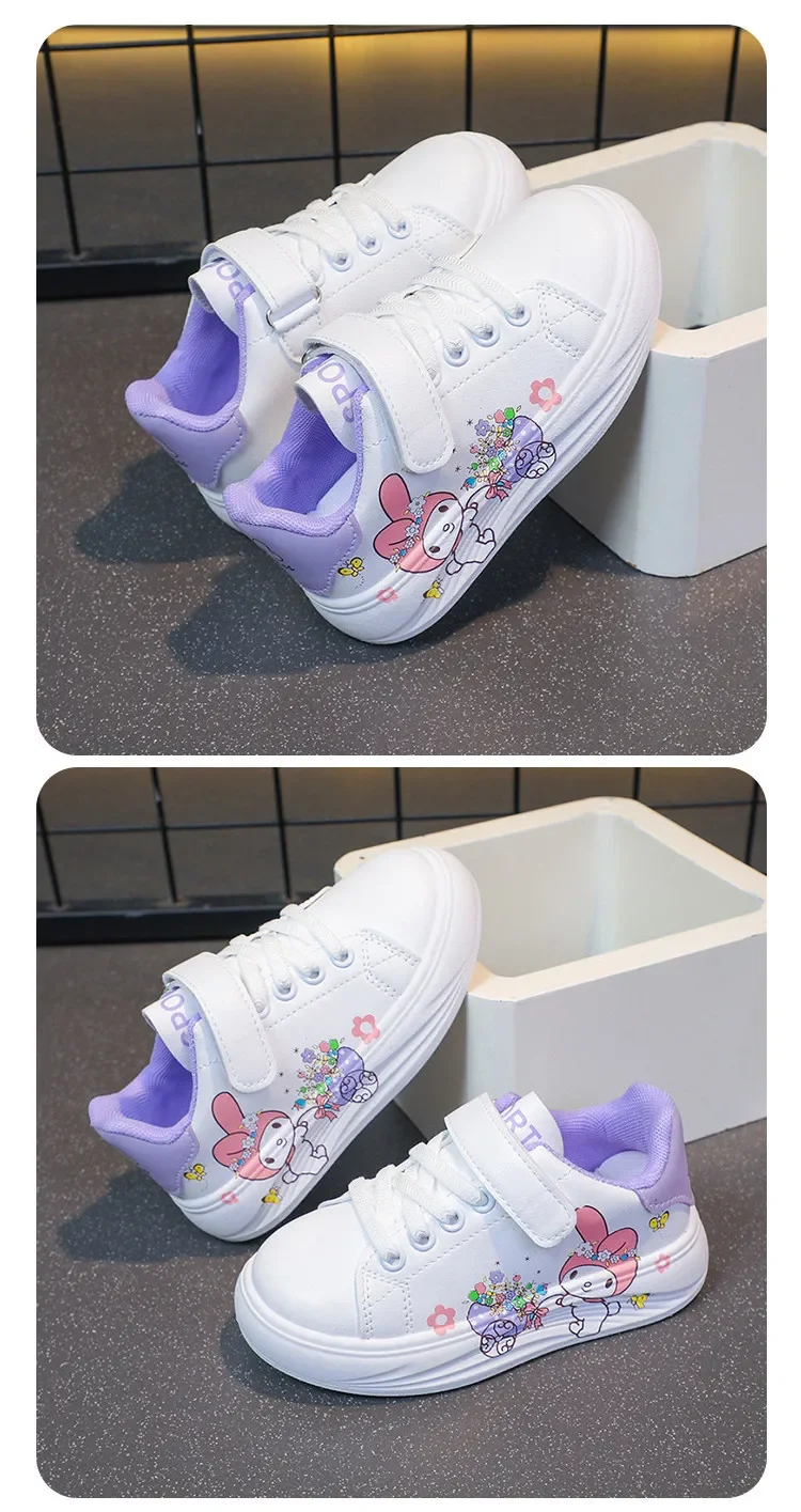 2025 Autumn New Children Little White Shoes for Girls Fashion Cute Melody Soft Comfortable Casual Versatile Trendy Sneakers