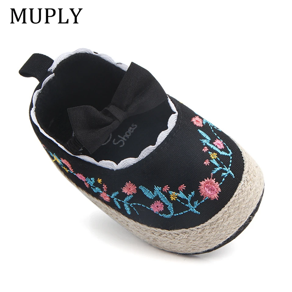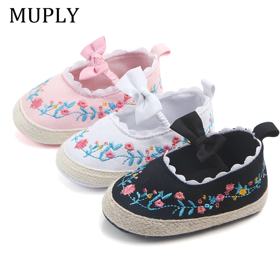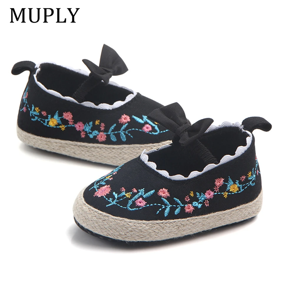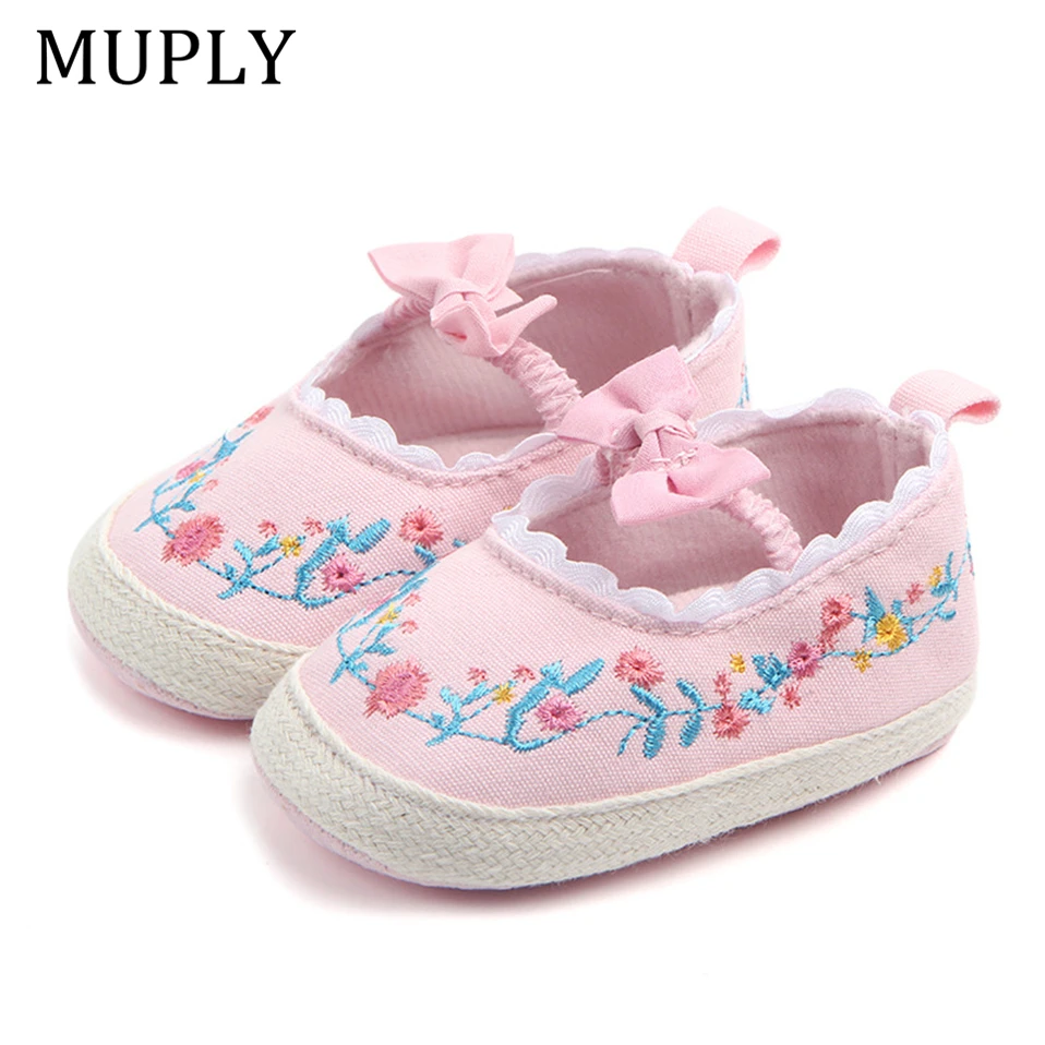 2025 Big Bow Toddler Shoes For Newborn Floral Embroidery Baby Soft Sole First Walker Anti-Slip Baby Girls Shoes Prewalker