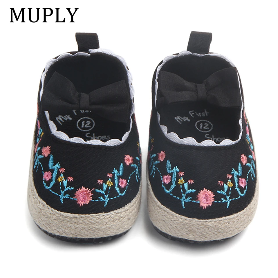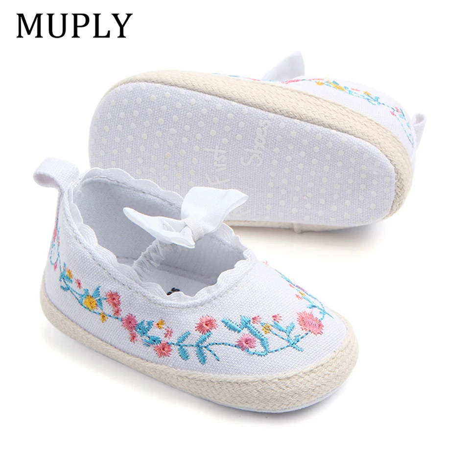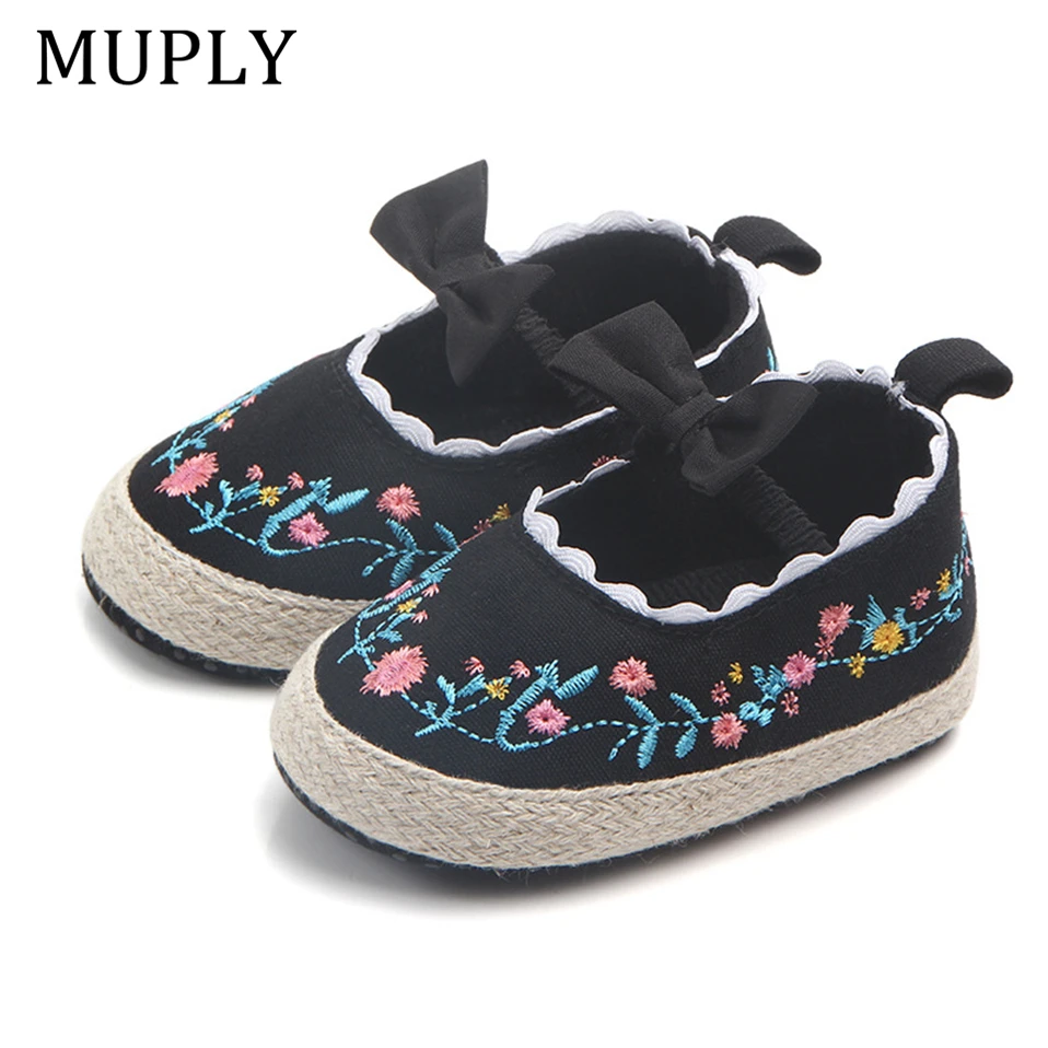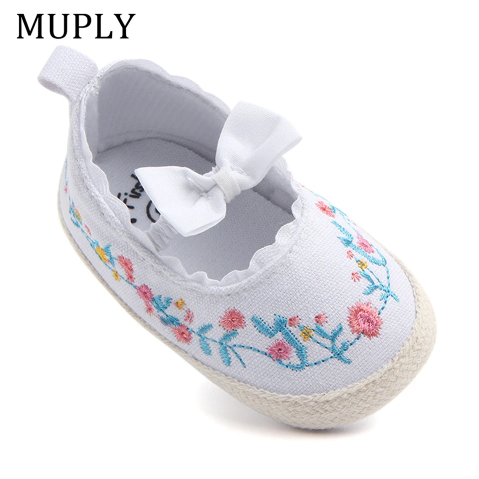 2025 Big Bow Toddler Shoes For Newborn Floral Embroidery Baby Soft Sole First Walker Anti-Slip Baby Girls Shoes Prewalker