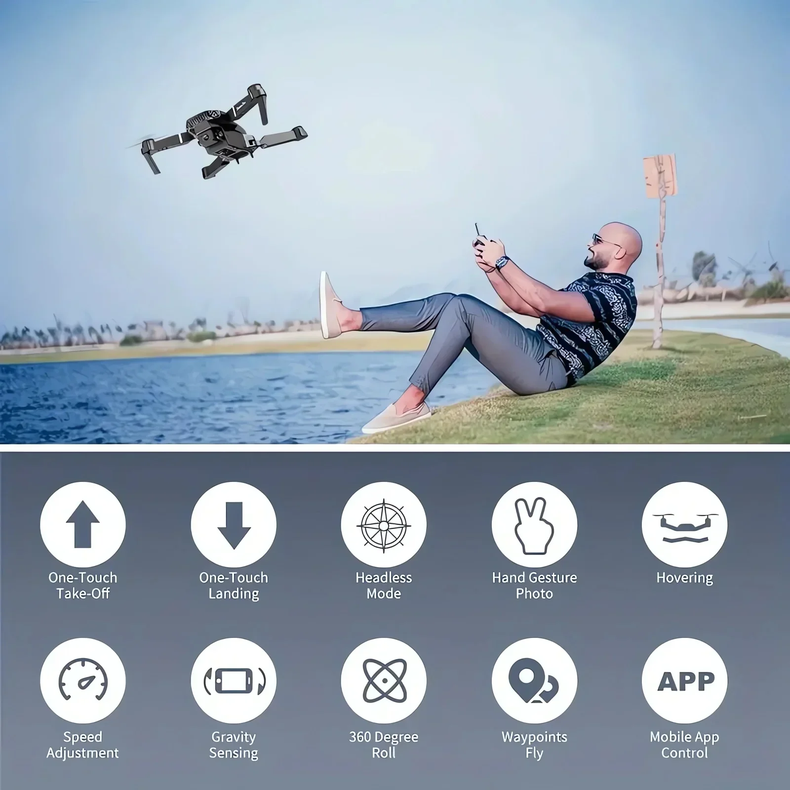 Up/down, Forward/backward, Turn left/right, Sideward flight, 3-level flight speed, LED Light, Headless Mode, One Key Automatic Return, Altitude Hold Mode, WiFi FPV, Trajectory Flight, Camera/Video
