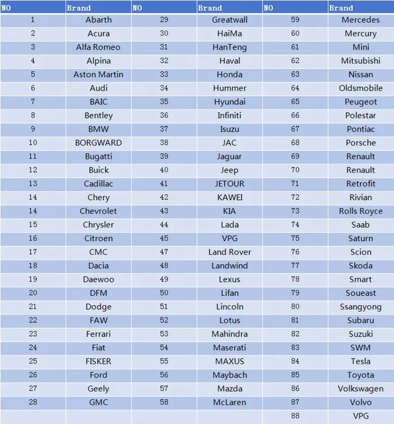 Compatiable Vehicle List: