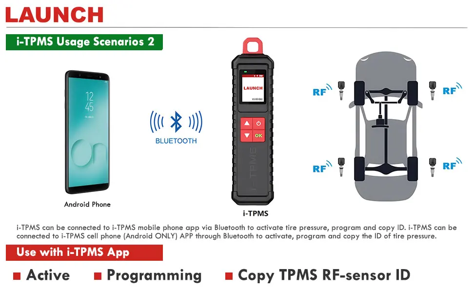 Notice: This product is either used with Launch X431 equipment or installed with Android mobile phone APP. It cannot be used alone.