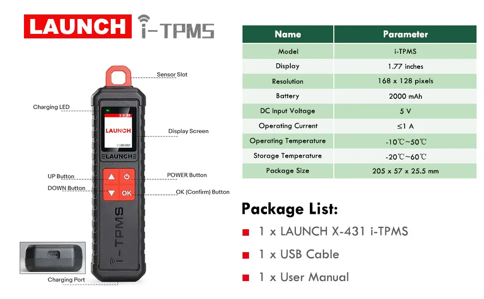 X-431 i-tpms is a professional TPMS diagnostic tool that integrates TPMS sensor activation, reading, learning and programming. It can activate and read tire pressure sensor information through high or low radio frequency.