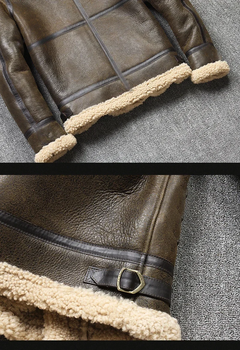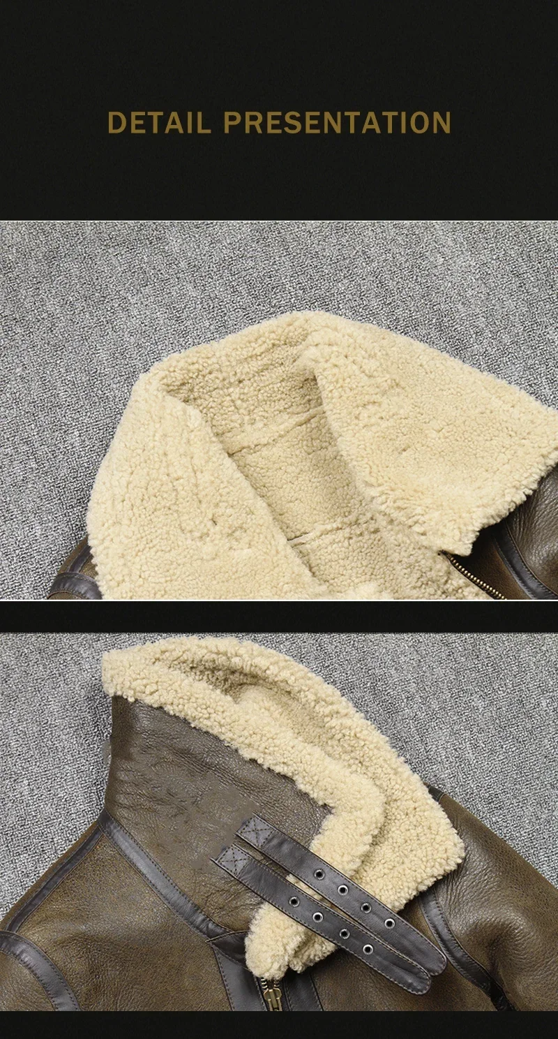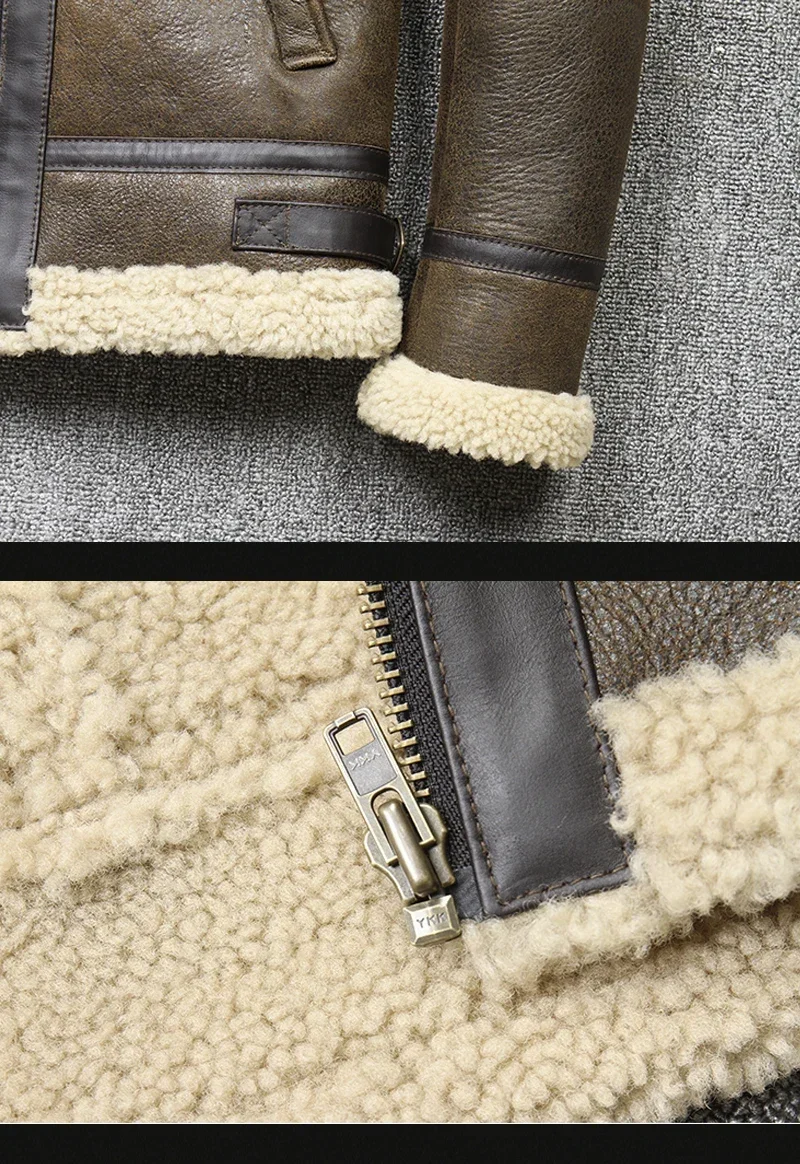 2025 Men’s Winter Aviator Real Leather Jacket Sheepskin Shearling Genuine Leather Rock Jackets High Quality B3 Bomber Male Coats