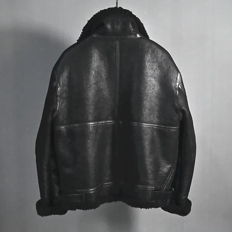 2022Winter Bomber Genuine Leather Jacket Men Sheep Shearling Lambskin Warm Jackets High Quality Japanese Version B3 Fur Collar