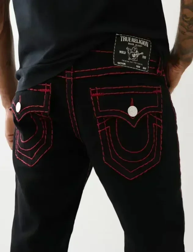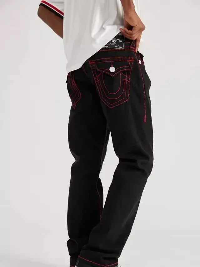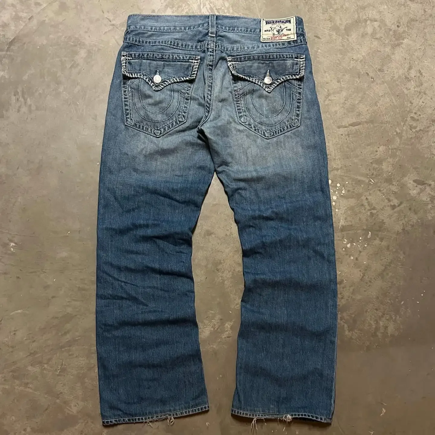 2025 New American Retro Pocket Embroidered Loose Jeans Y2K Gothic Hip-hop Casual Straight Leg Pants Street Wear