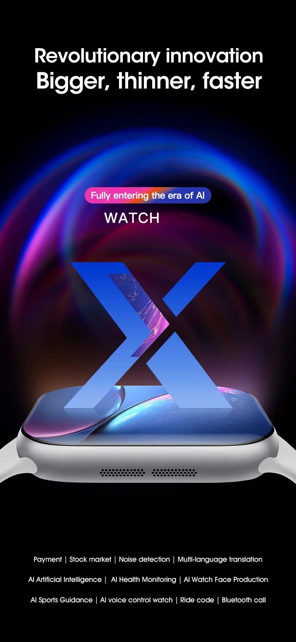 500+ watch faces free download, Smart Island, one-click connection, local music playback(can be connected to bluetooth headphones to play), album, e-book, recording, main menu background, music player interface background, Motion games, GPS sports, game downloads, background management,APP skin change, APP sports track video, healthy family sharing positioning, health information, SOS emergency alarm, Album WatchFaces, video WatchFaces, Wireless charging, Bluetooth call, IP68 waterproof, voice assistant, NFC access control, independent ringtone, independent clock,always on display, bedside lamp, female physiology, heart rate, ECG, blood pressure, blood oxygen, sleep, step counting, Bluetooth camera, Bluetooth music,Friends, payment code,calculator, contacts, weather,stopwatch, timing, alarm clock, password lock, flashlight.