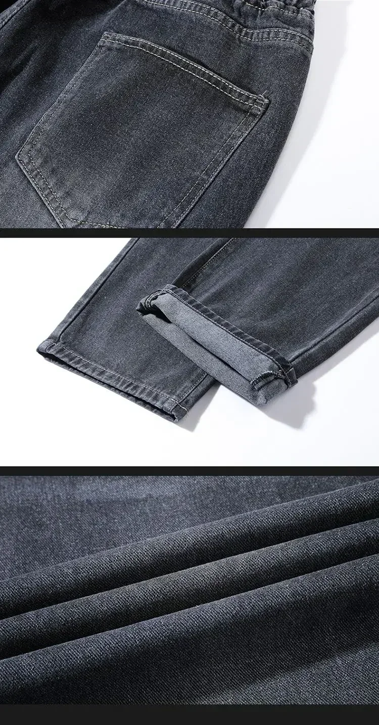 2025 New Men's Straight Denim Pants Fashion Brand Clothes Black Blue Gray Jeans Classic Washed Stretch Cotton Business Casual
