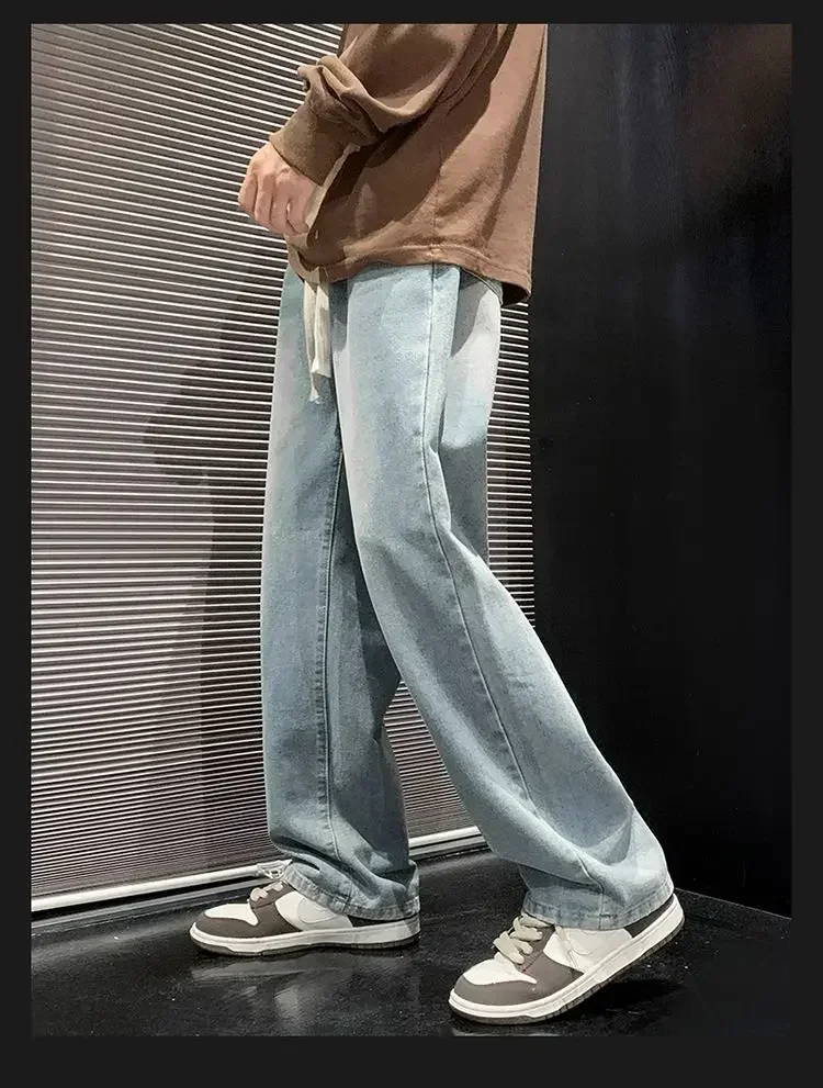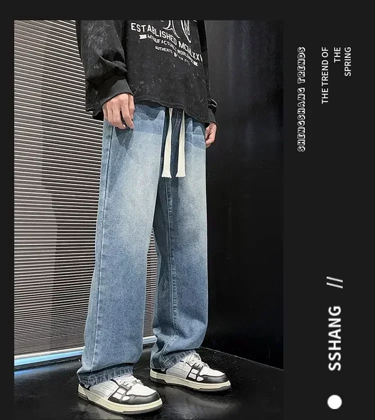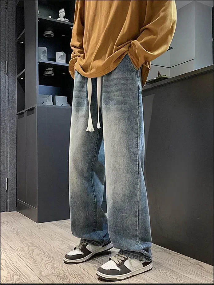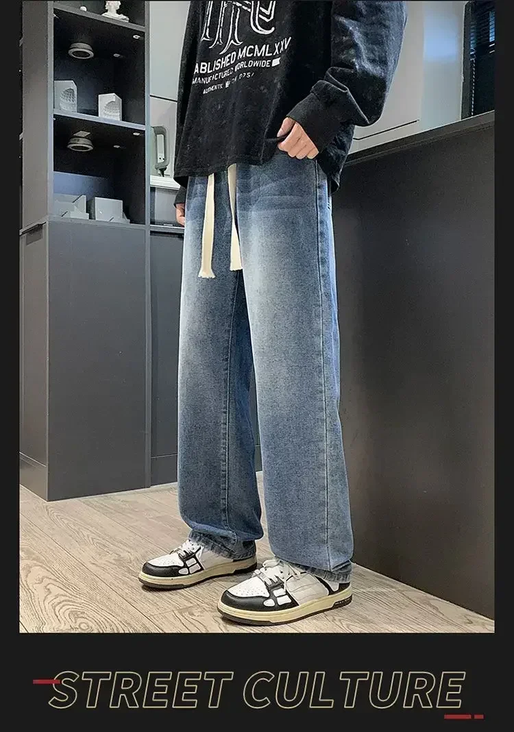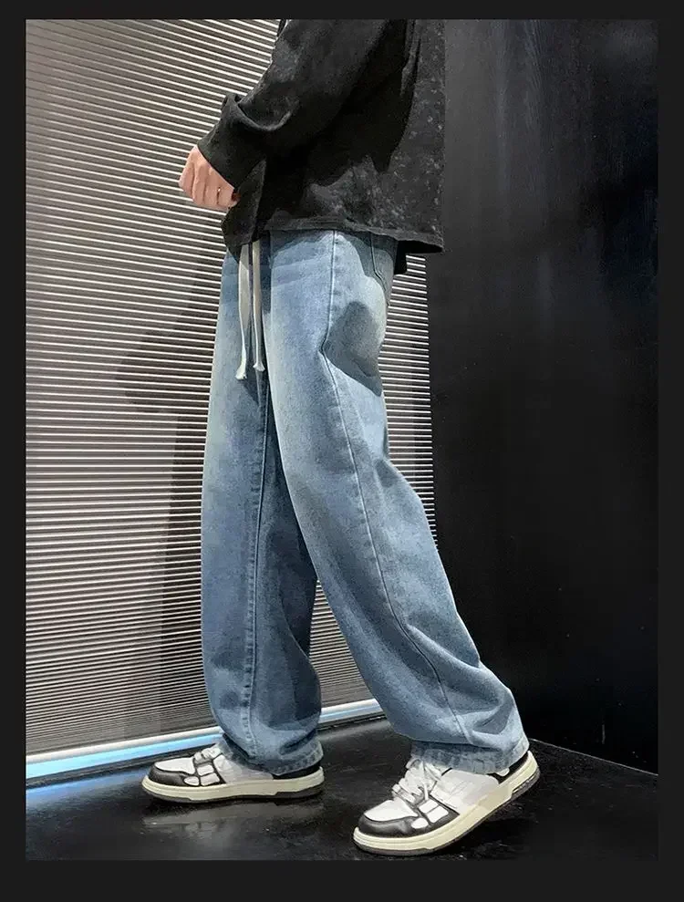 2025 New Fashion Summer Men’s Denim Pants Old Blue Washed Male Brand Jeans Straight Casual Menwear Loose Wide Leg Trousers
