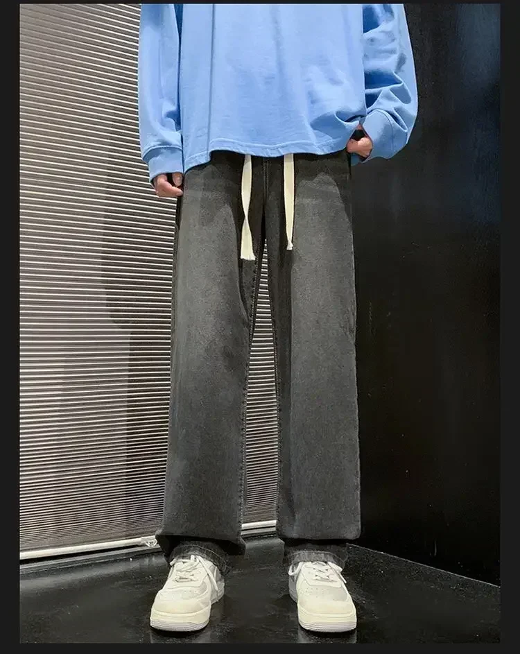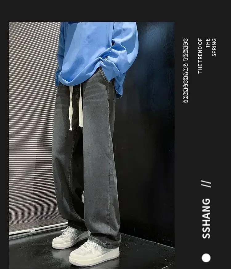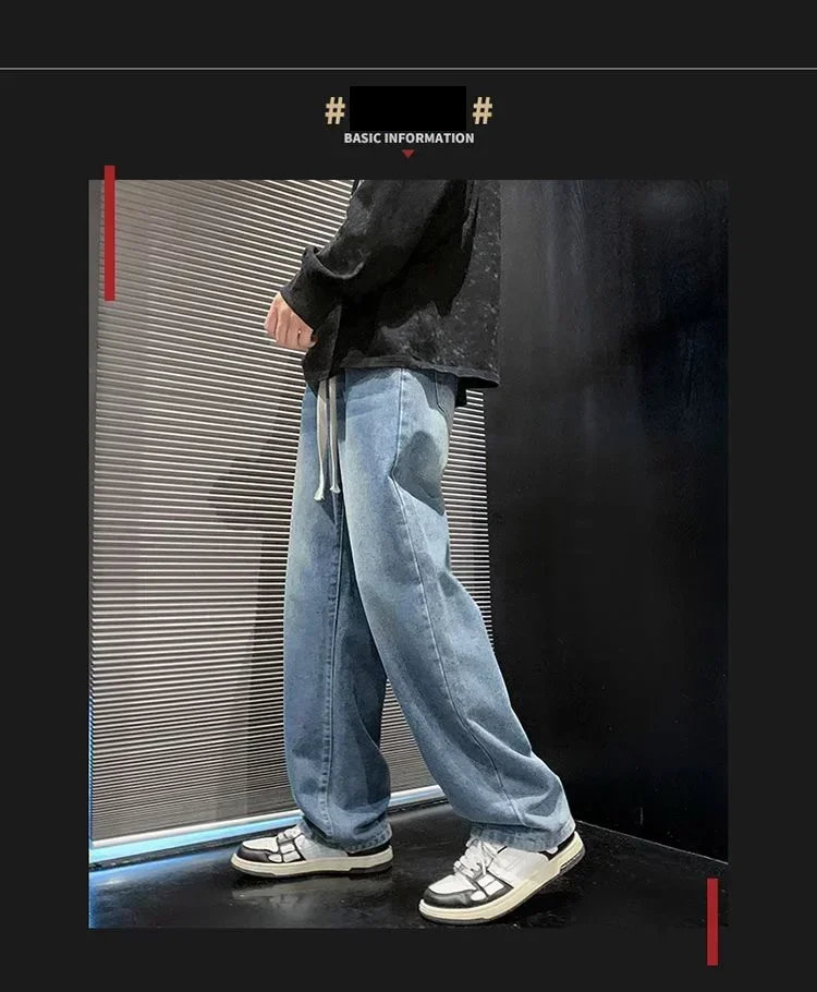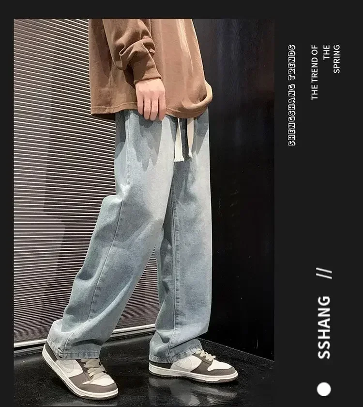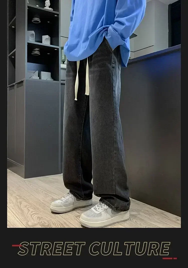 2025 New Fashion Summer Men’s Denim Pants Old Blue Washed Male Brand Jeans Straight Casual Menwear Loose Wide Leg Trousers