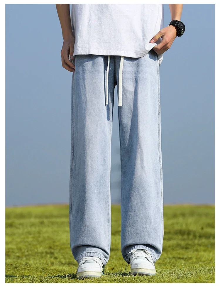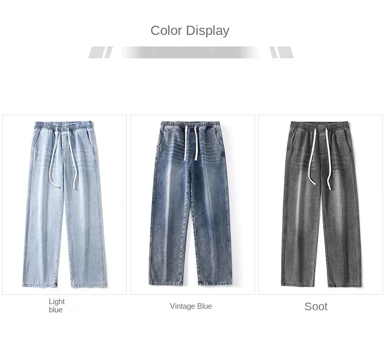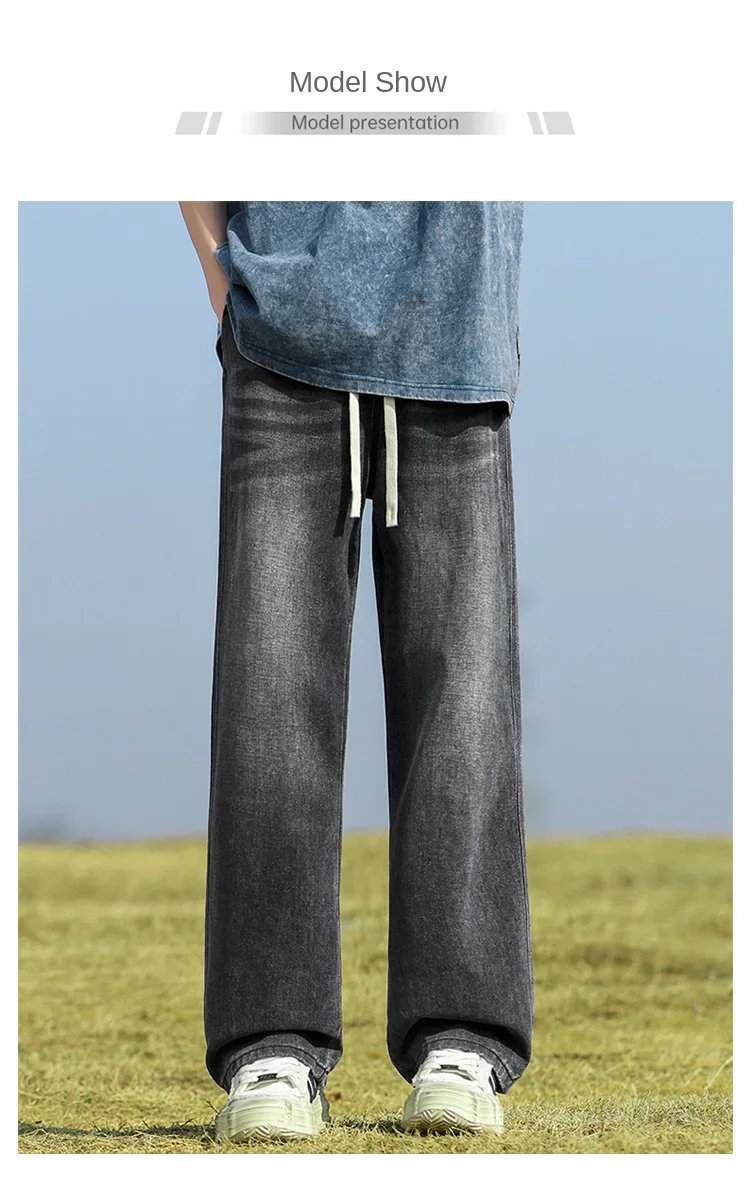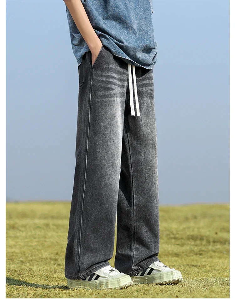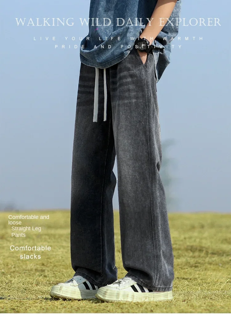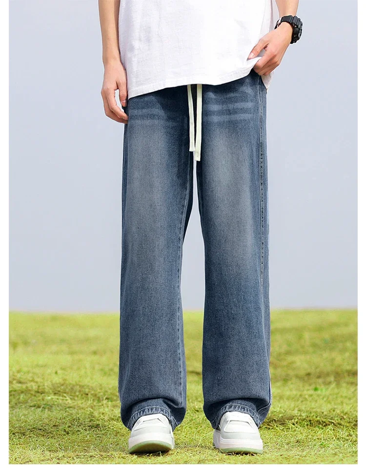 2025 New in Spring and Autumn New Men’s Jeans Style High Street Wide Leg Pants Pants Washed Drawstring Rubber Band Pants Trend