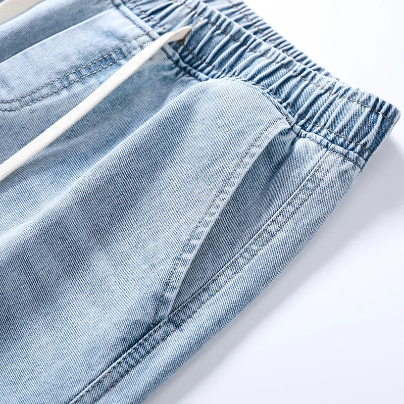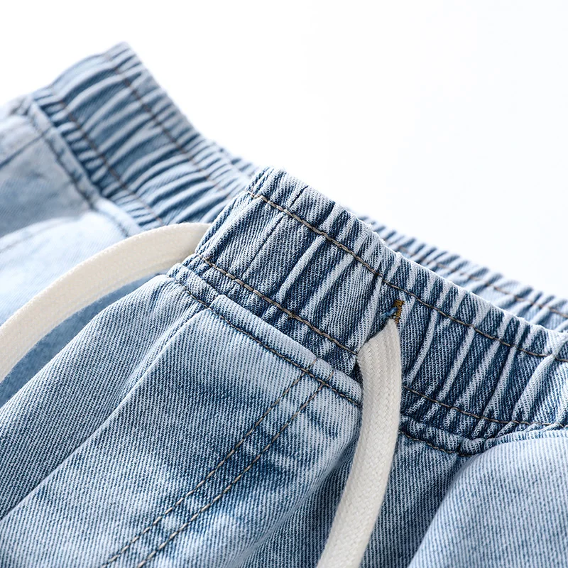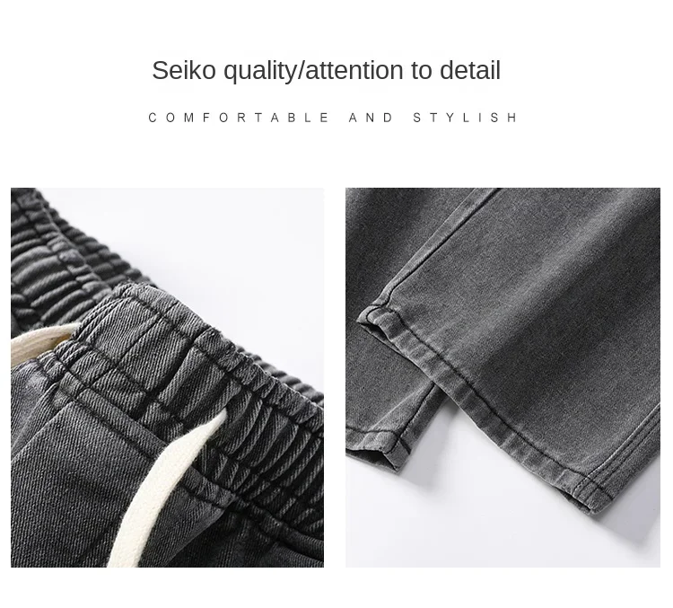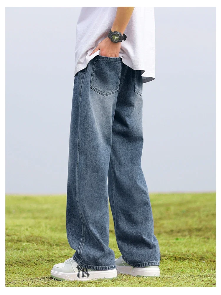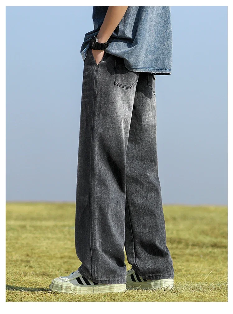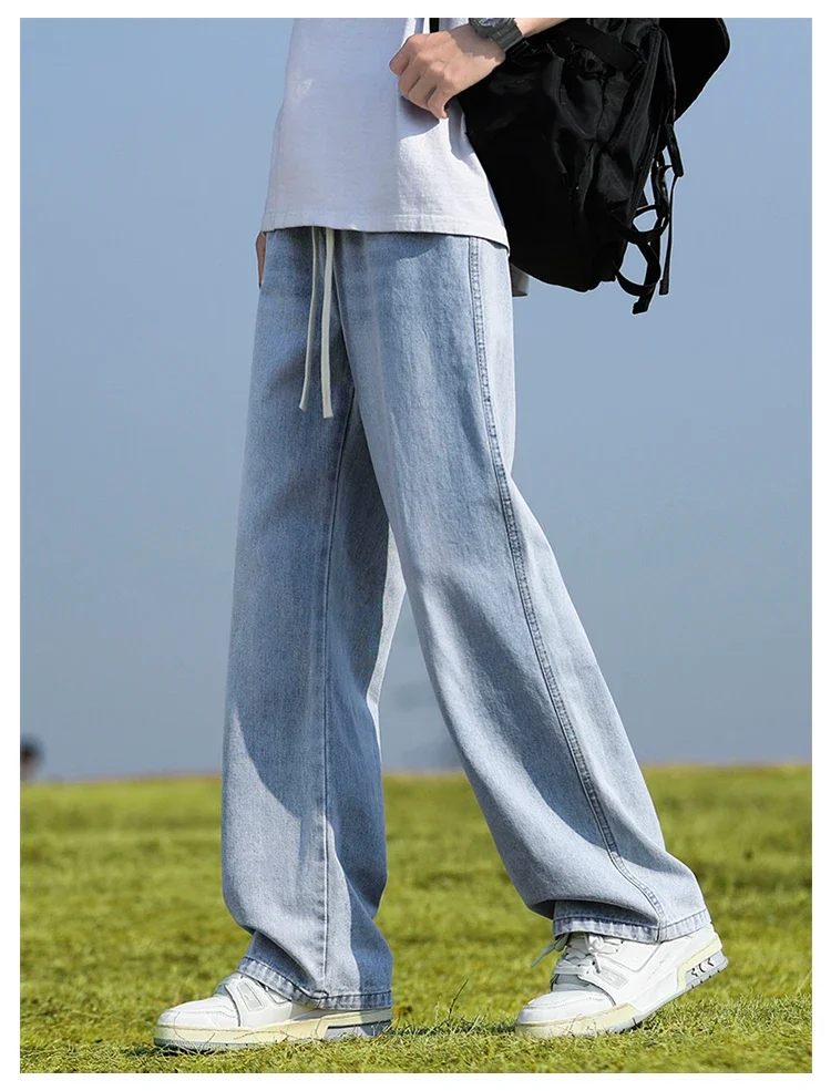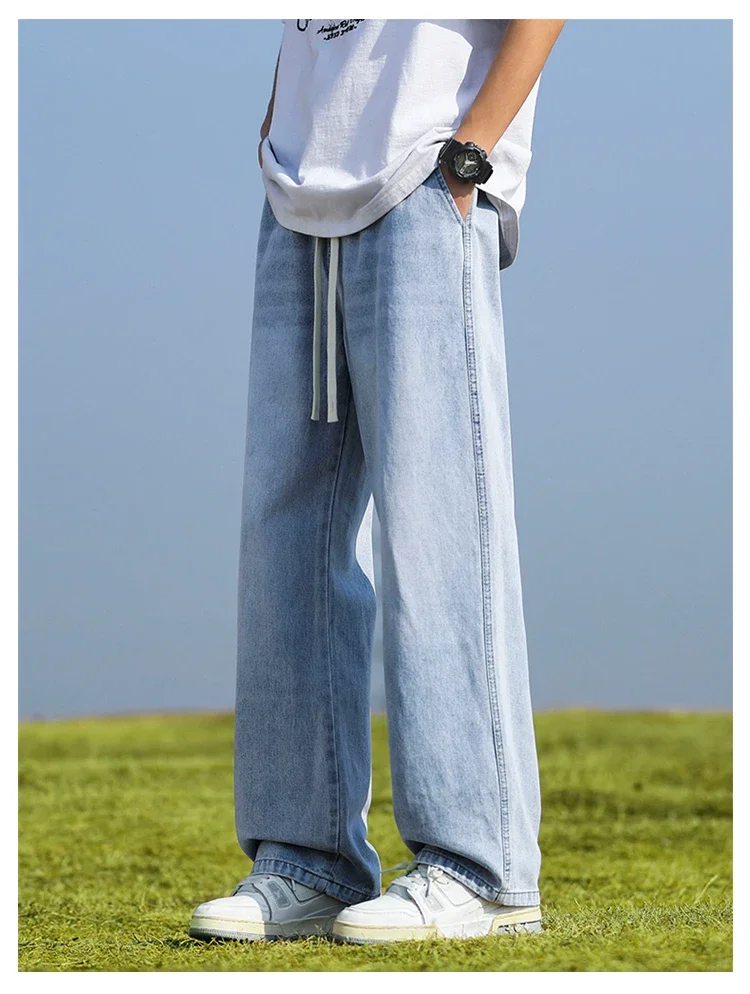 2025 New in Spring and Autumn New Men’s Jeans Style High Street Wide Leg Pants Pants Washed Drawstring Rubber Band Pants Trend