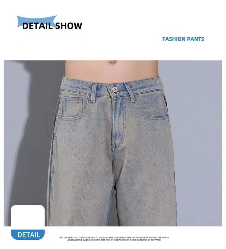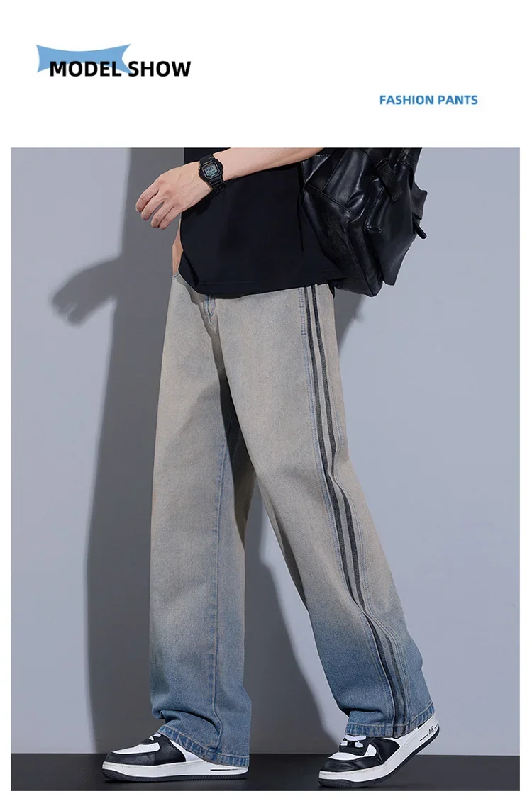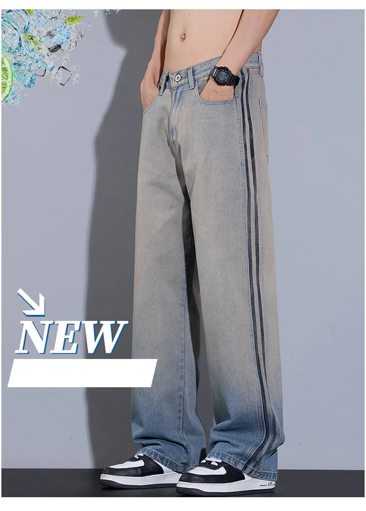 2025 New Men’s American High Street Jeans Straight Korean Casual Trousers Fashion Vintage Wide Male Personalized Denim Pants