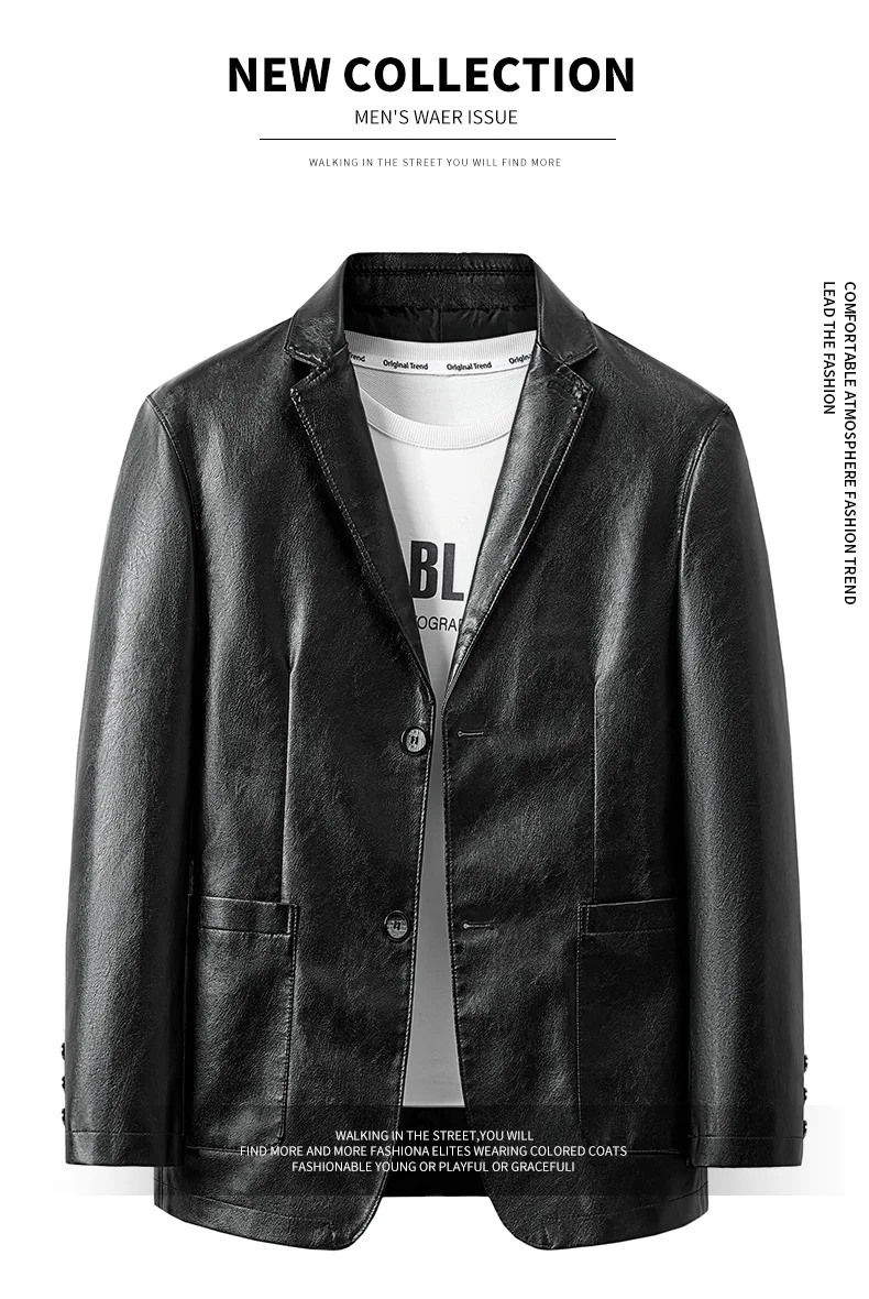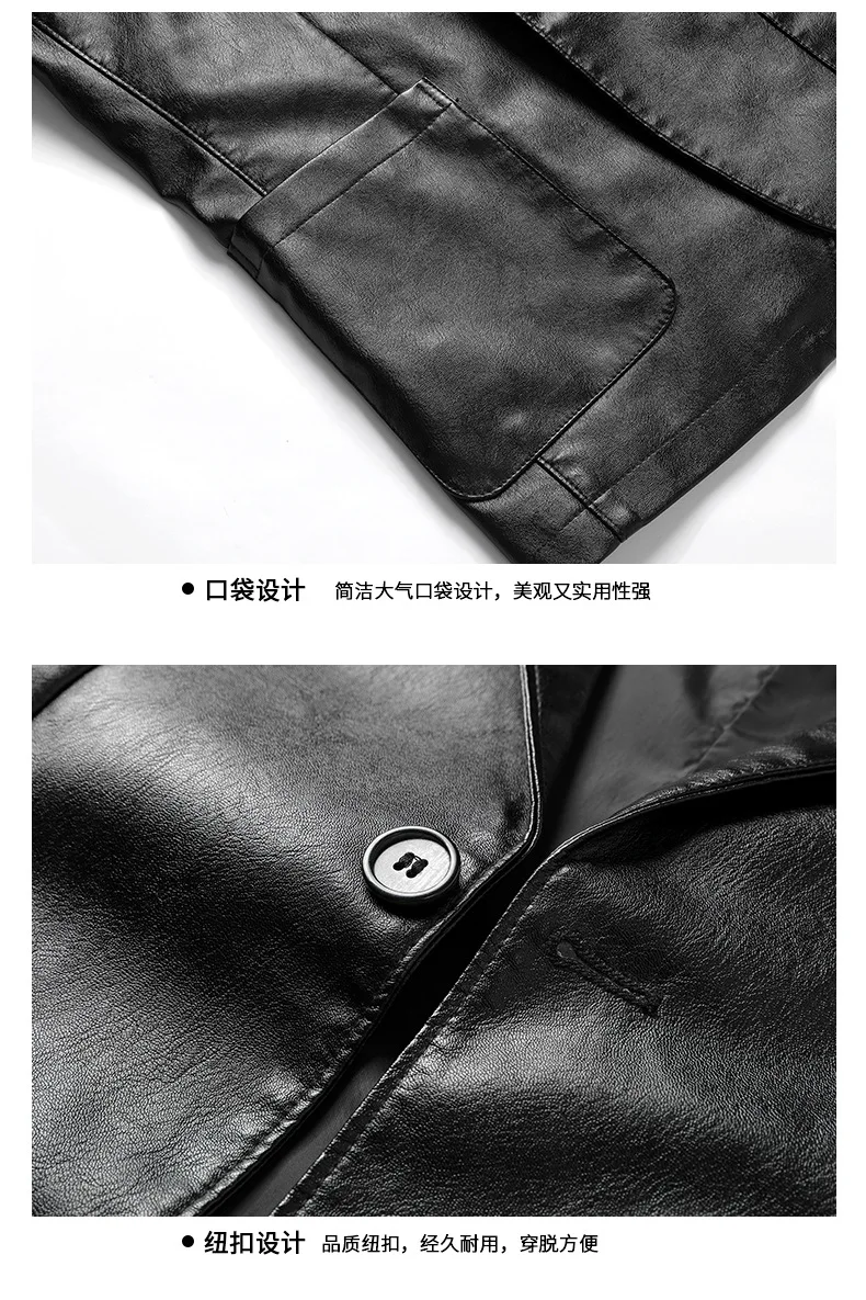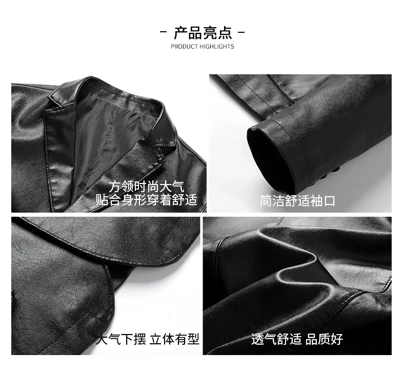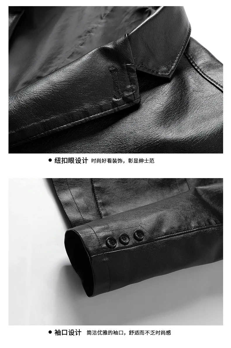 2025 New men’s fashion Business suit-style Leather trench jacket spring Classic long sleeve coat leather clothes