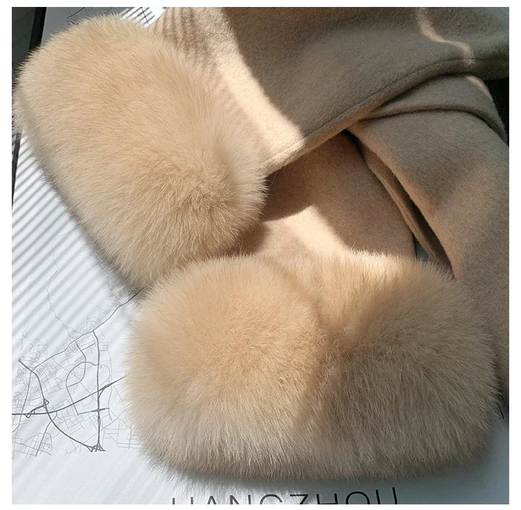 Material : Real Fox Fur+ 90%Wool+10%Cahsmere