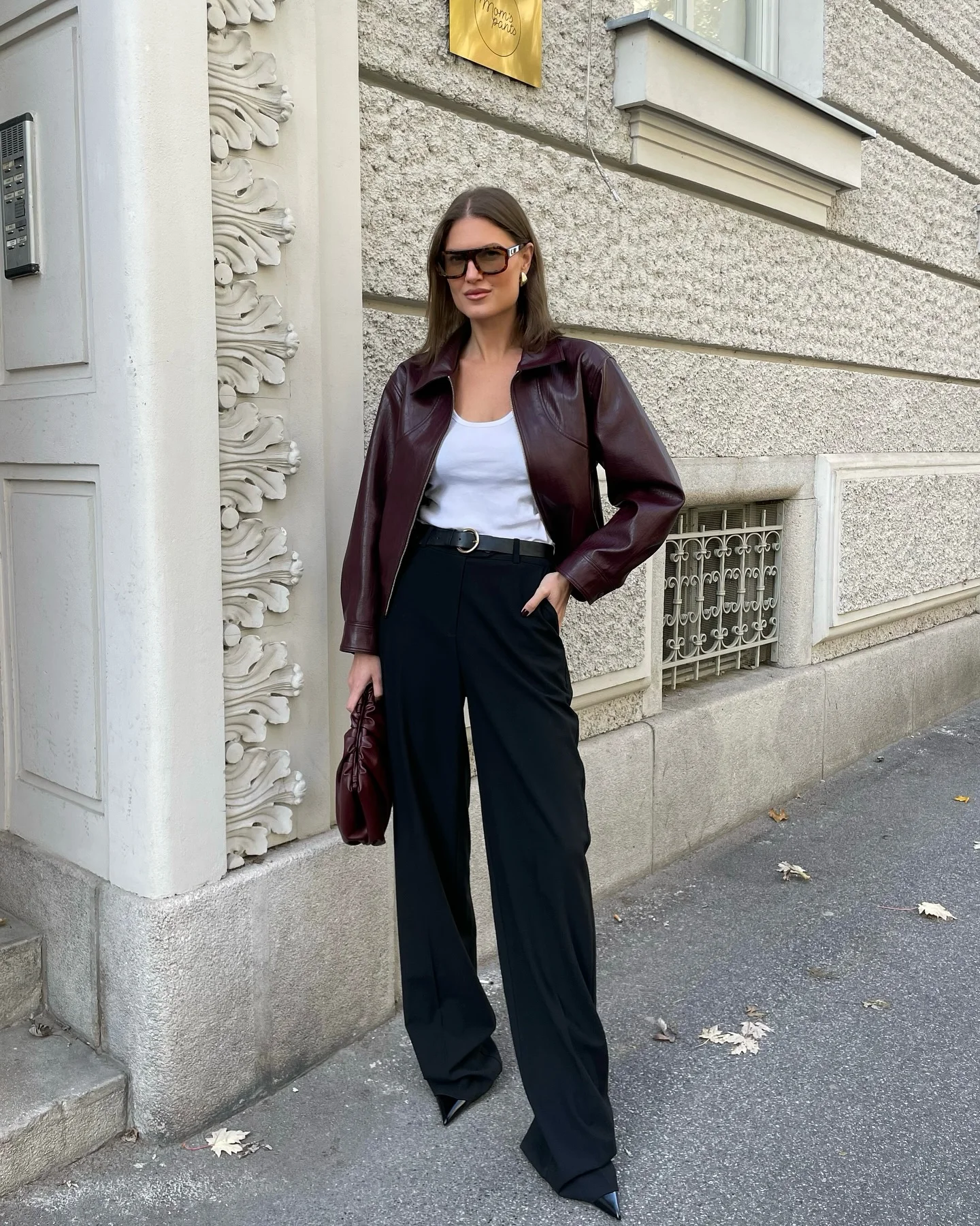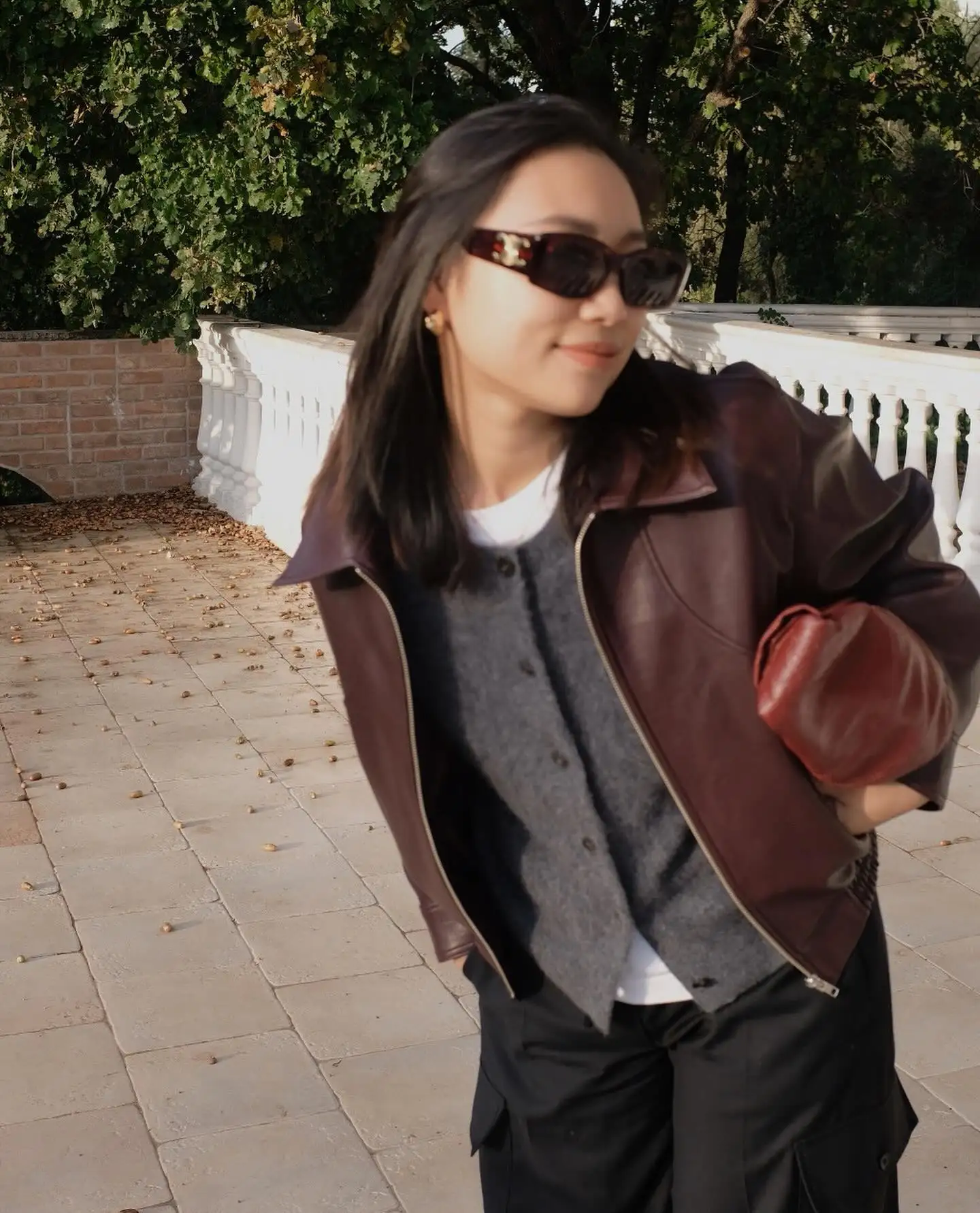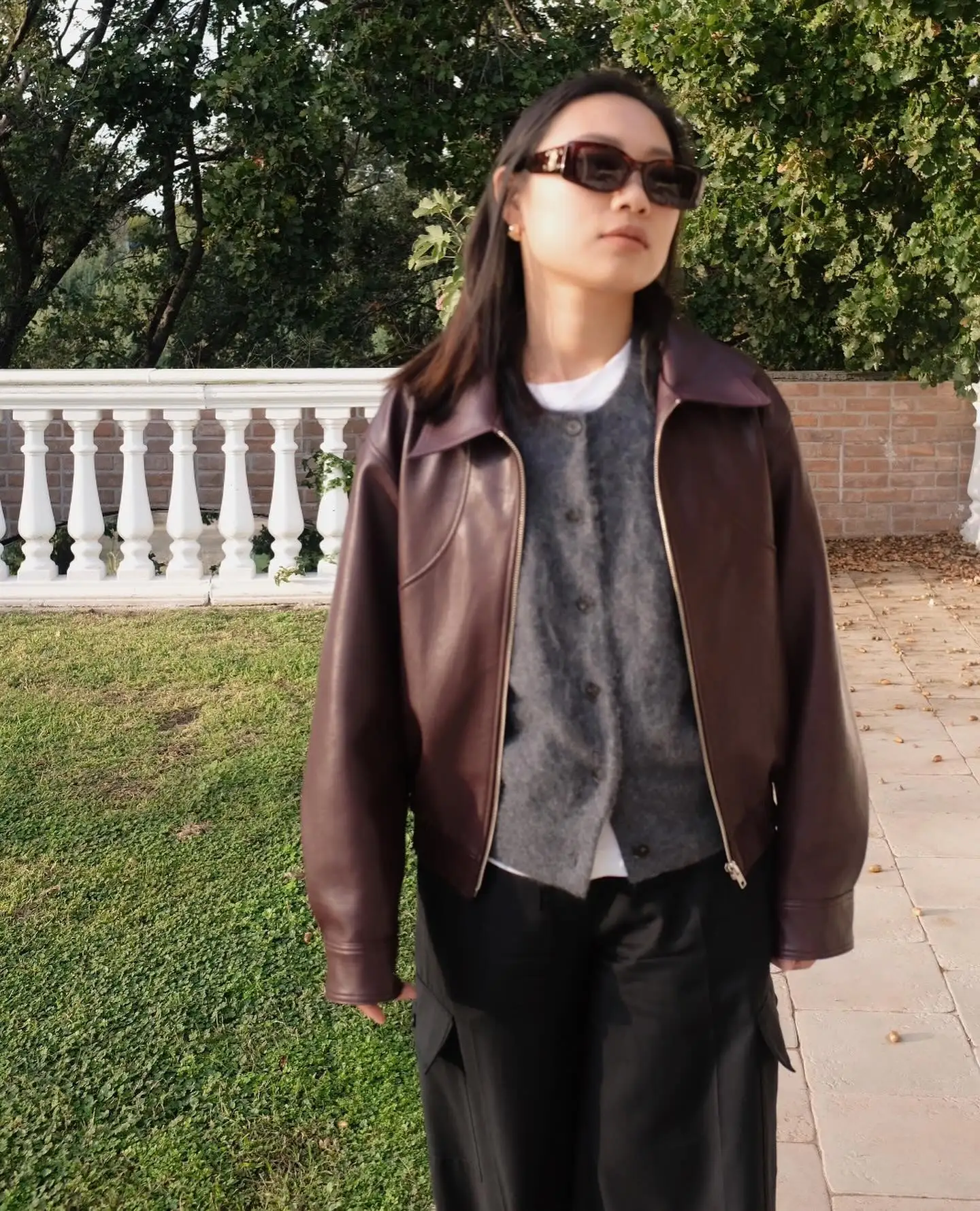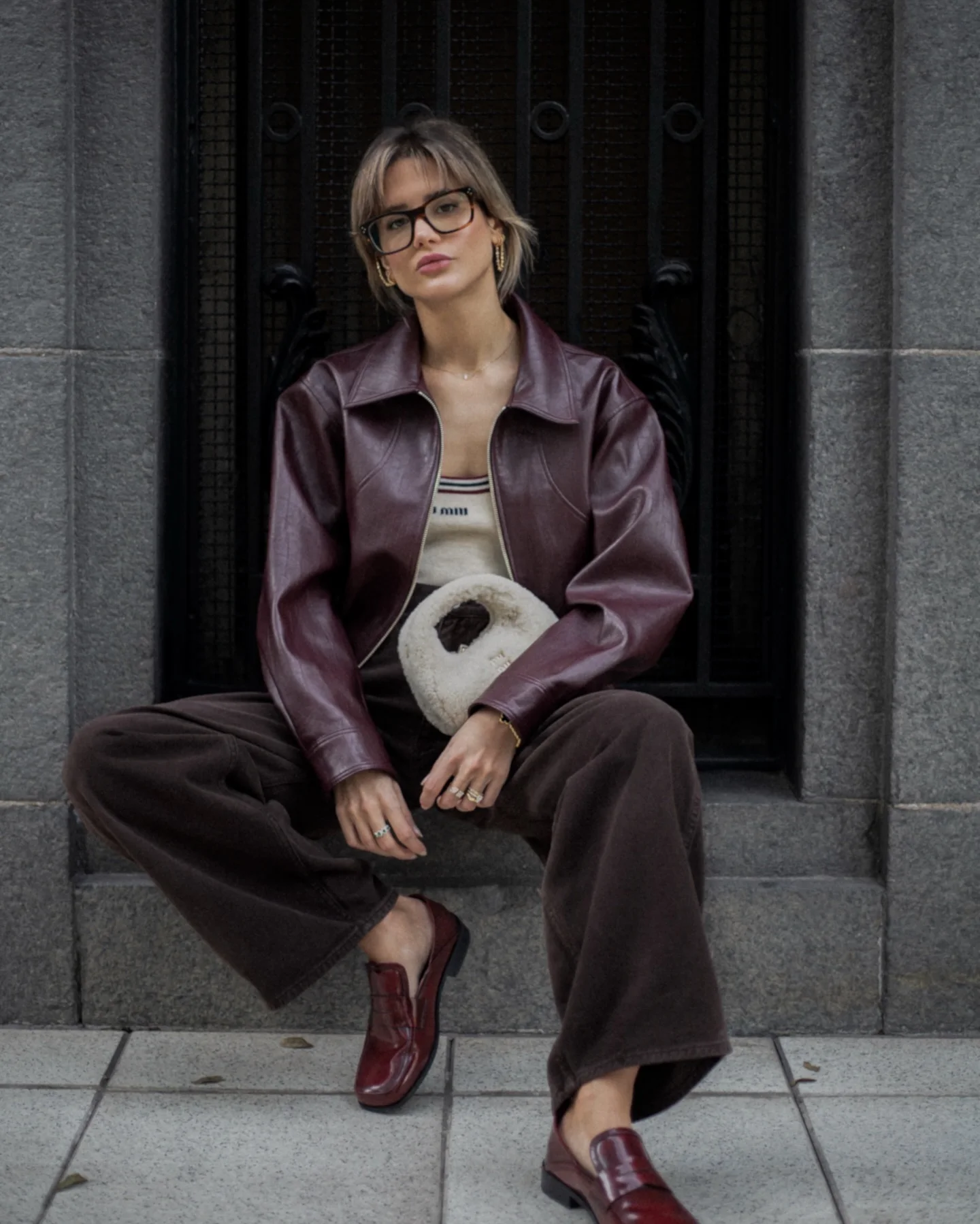 2025 New Women Burgundy Lapel Leather Jackets Fashion Casual Loose Pockets Long Sleeve Coats Spring Female High Street Outerwear