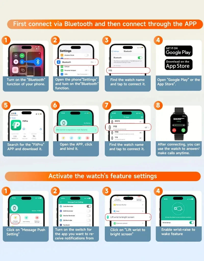 After receive the watch ,please charging first. Because after a long period of logistics, the watch has a low battery. Before using, scan the QR code on the manual to download the app and connect it to the watch with APP