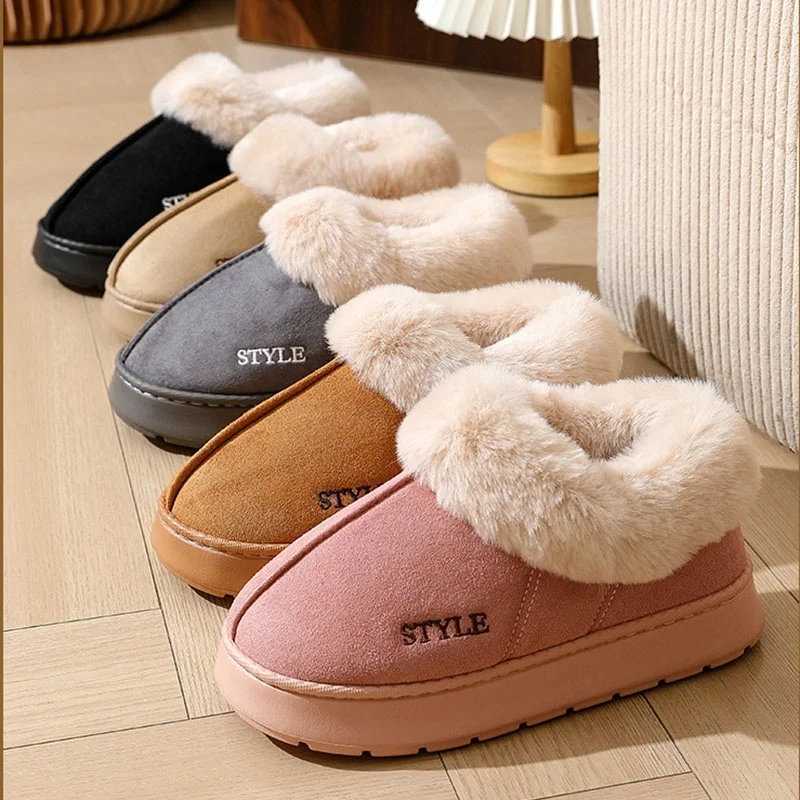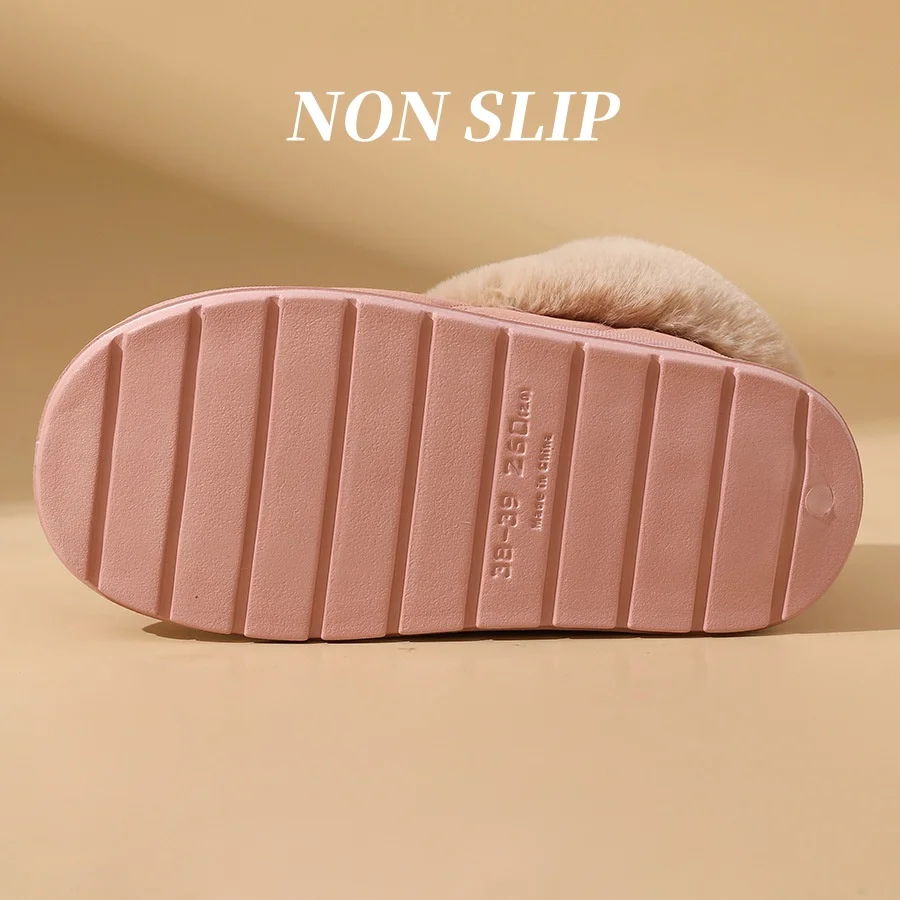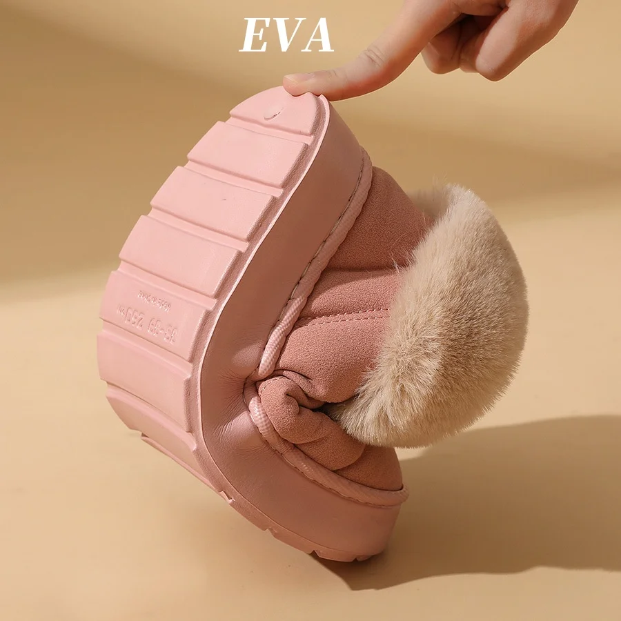 2025 Pink Faux Fur Winter Boots Home Women New Faux Suede Snow Short Boots Plush Woman Non Slip Thick Bottom Warm Padded Shoes
