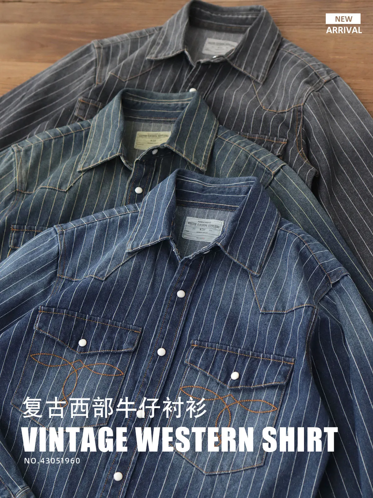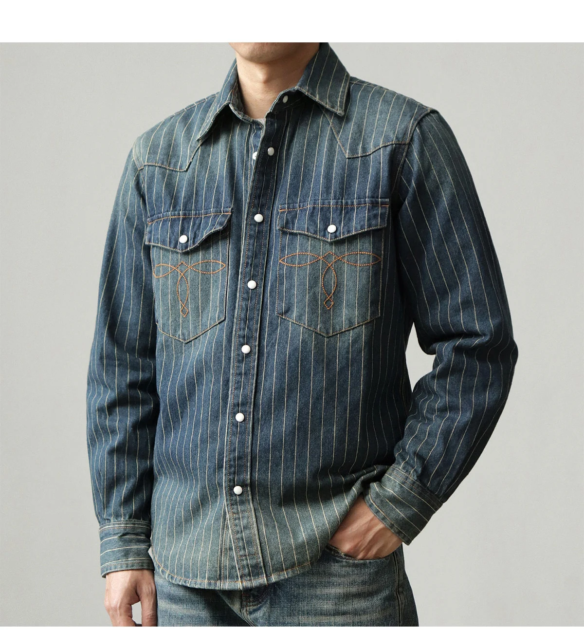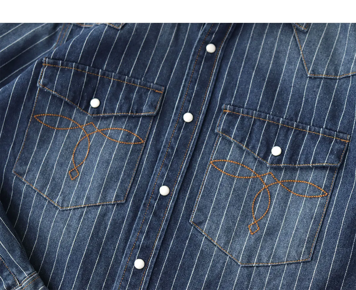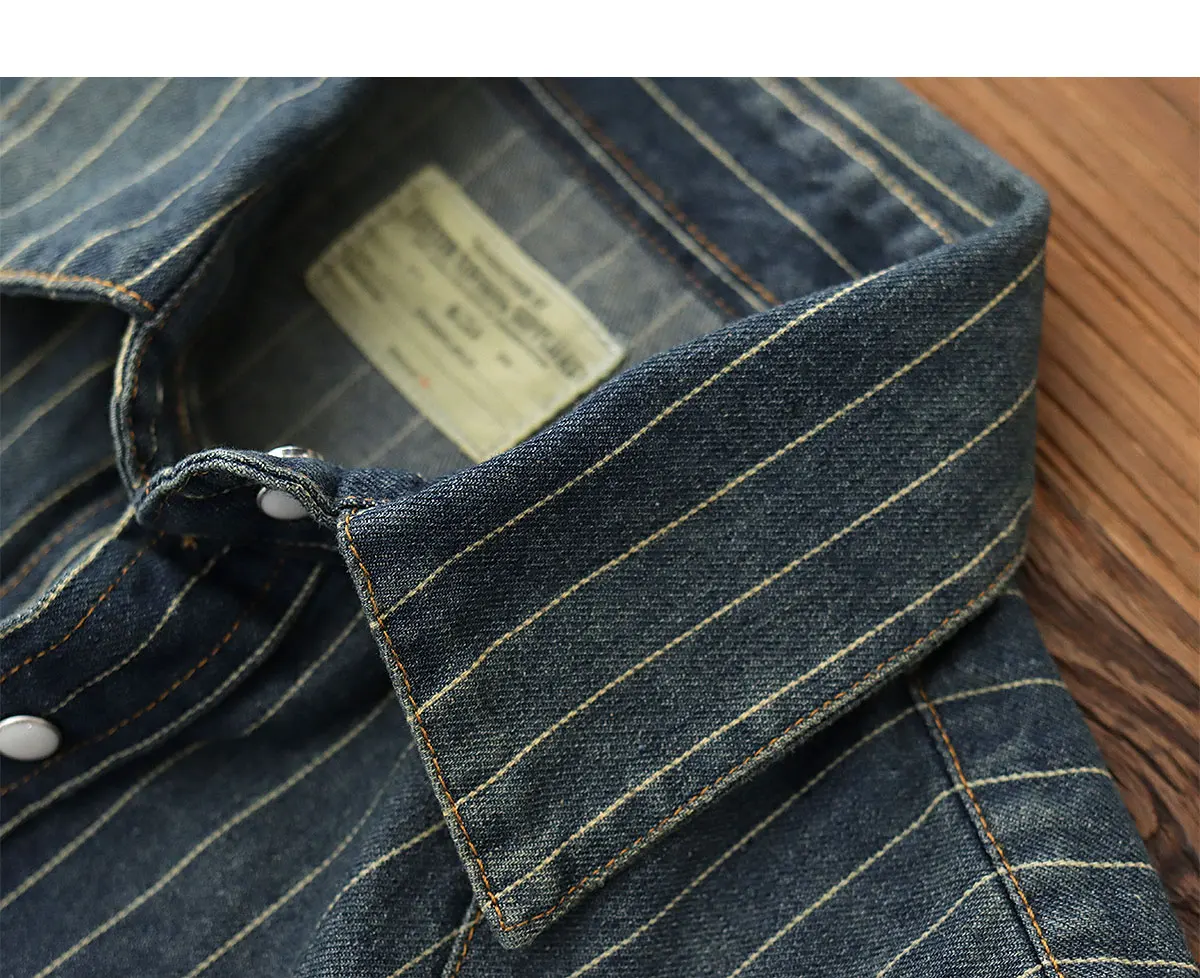 2025 Spring American Retro Denim Cargo Striped Shirt Men’s Simple 100% Cotton Washed Old Casual Double Pocket Amekaji Blouses