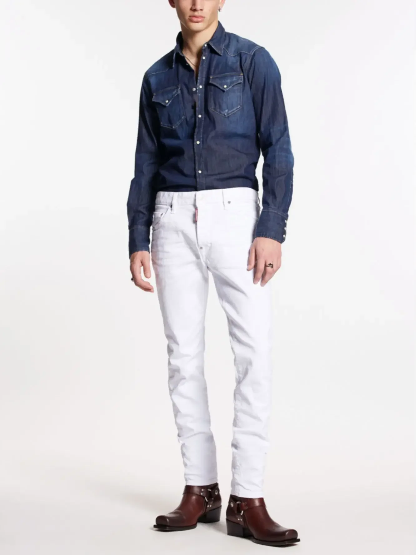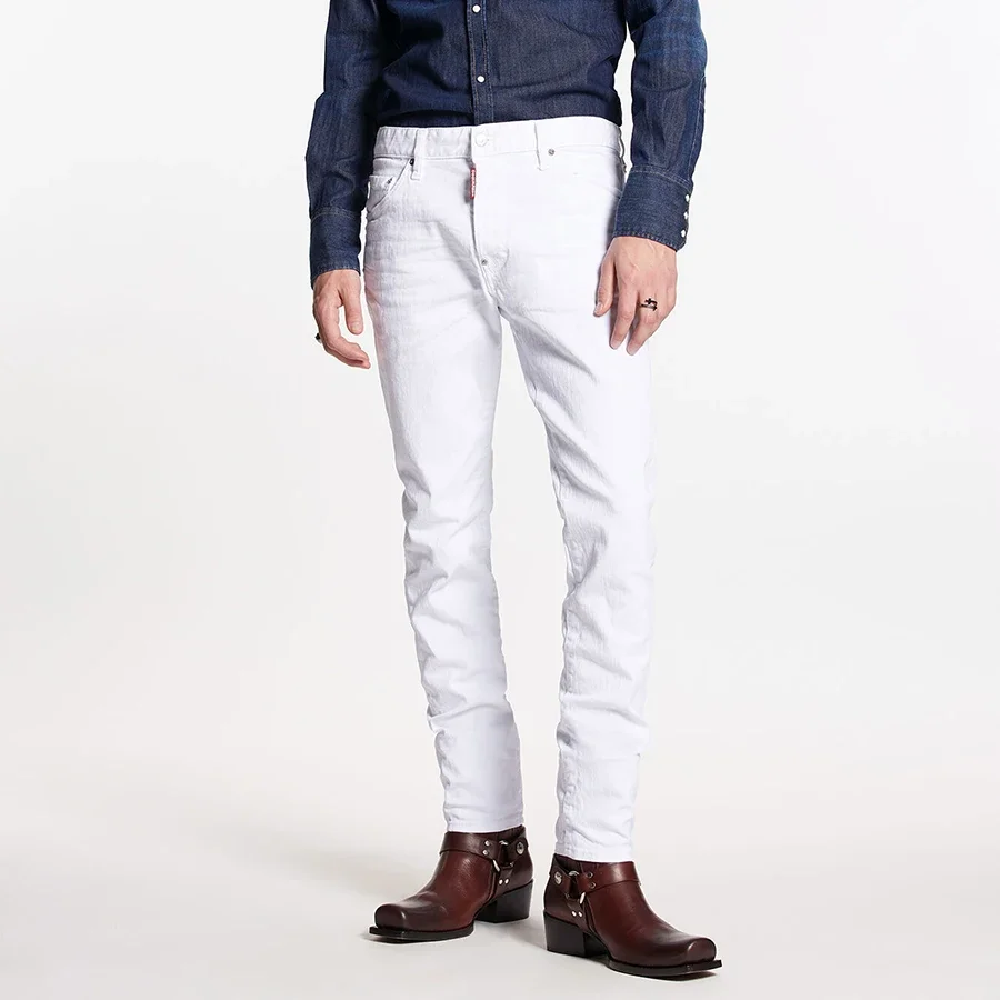 2025 Spring and Summer New D2 Jeans Trendy Men’s Washed Grinding Hole Patch Paint Three-dimensional Cutting Feet Blue