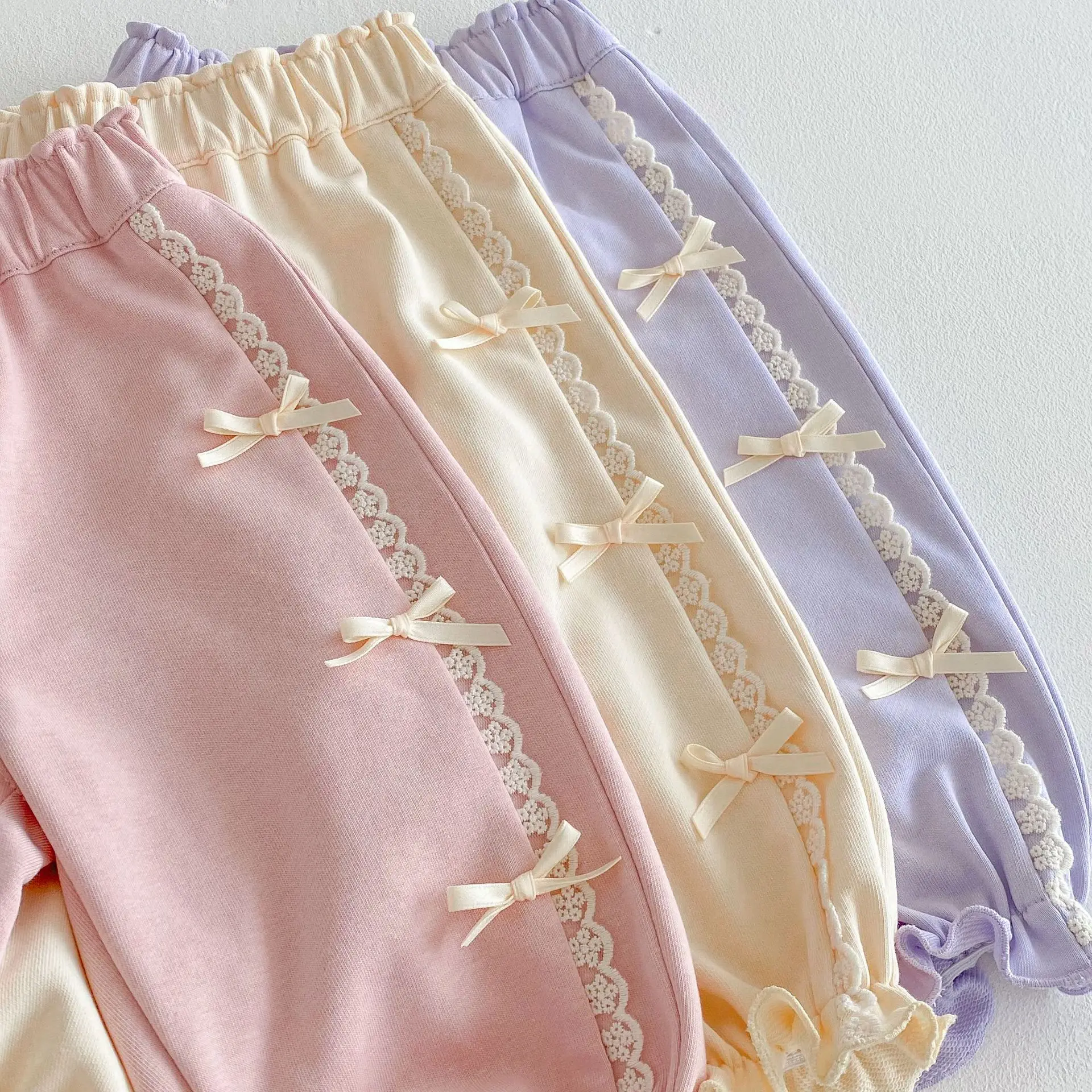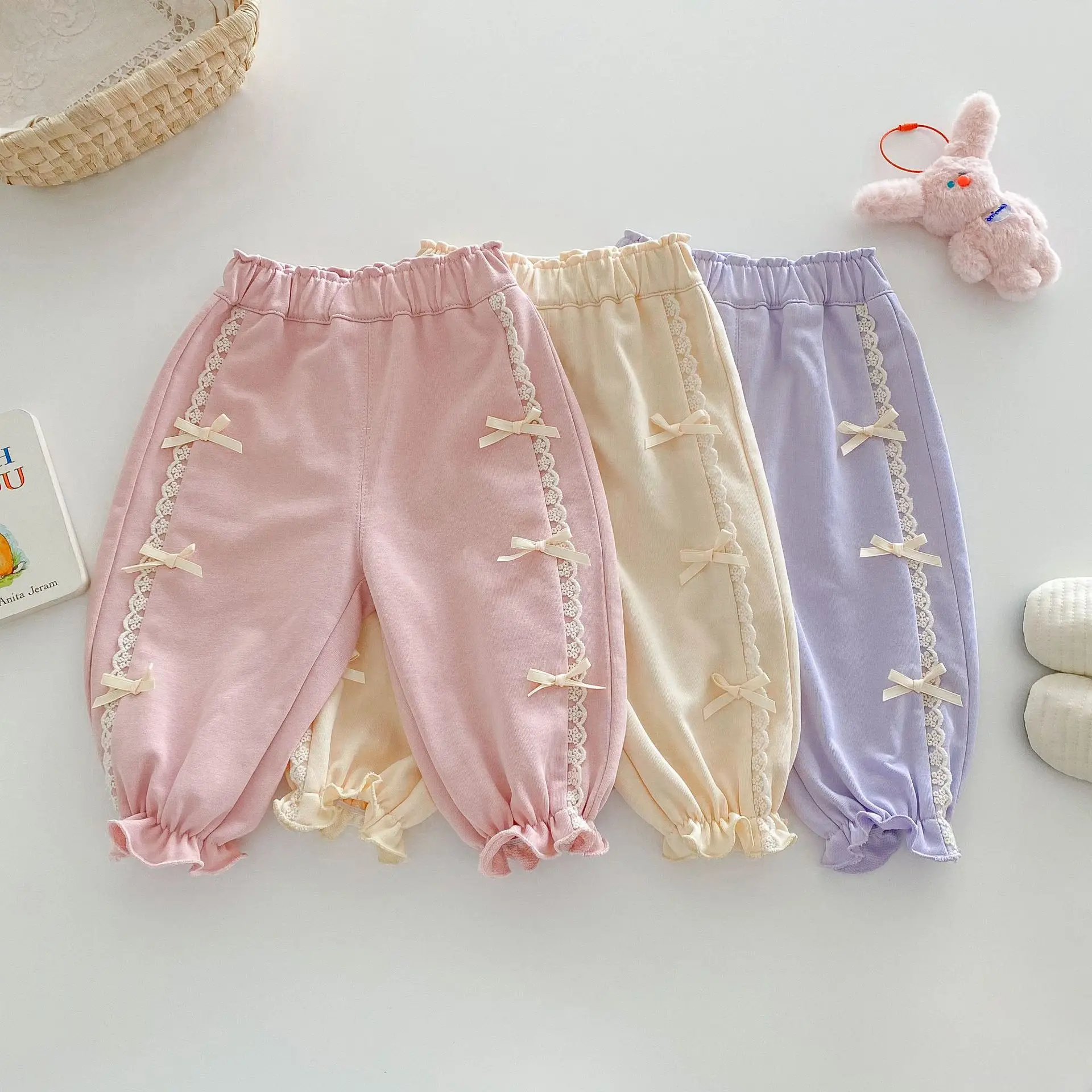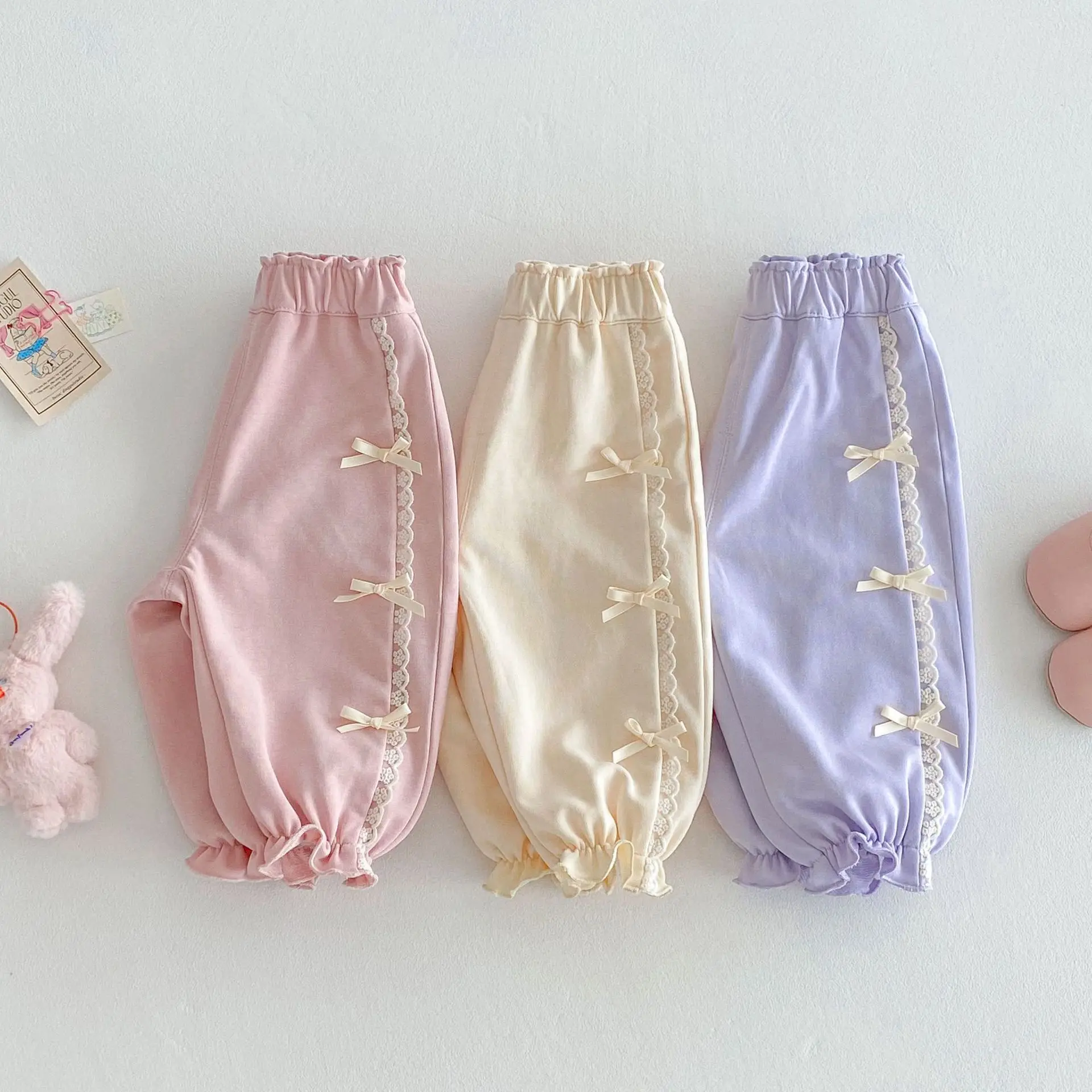 2025 Spring Baby Girls Pants Toddler Loose Bloomers 0-5Year Kids Girls Bows Casual Trousers