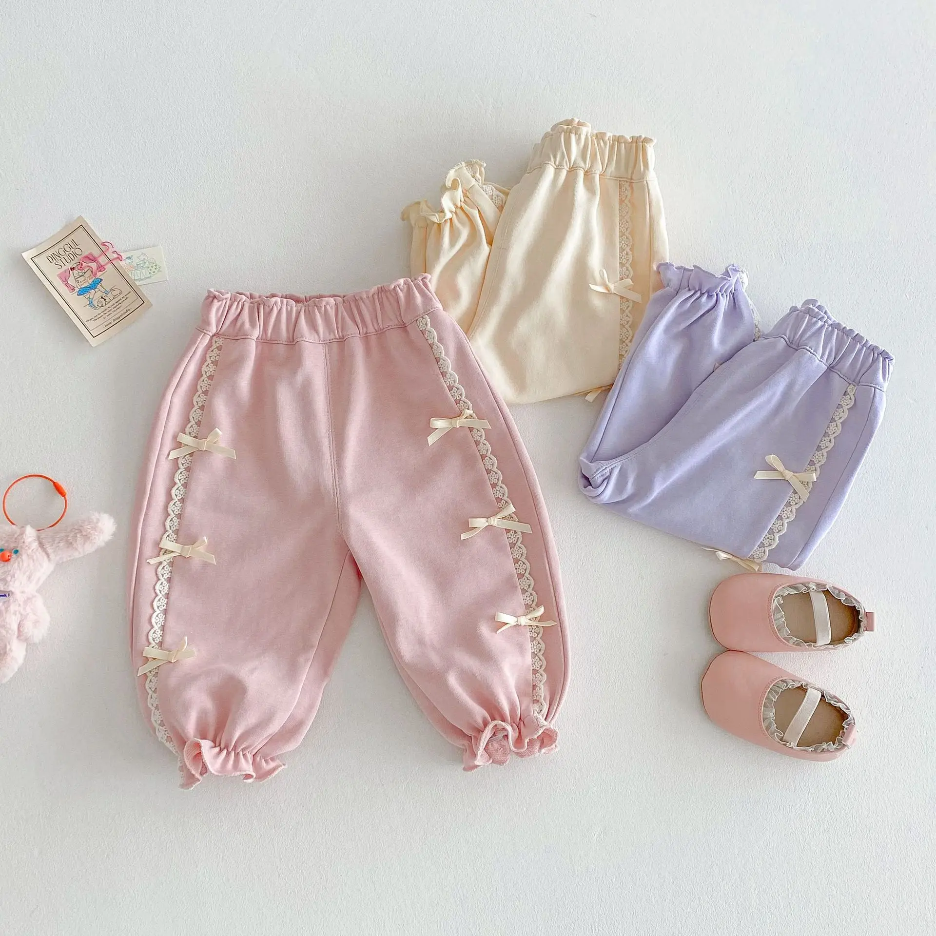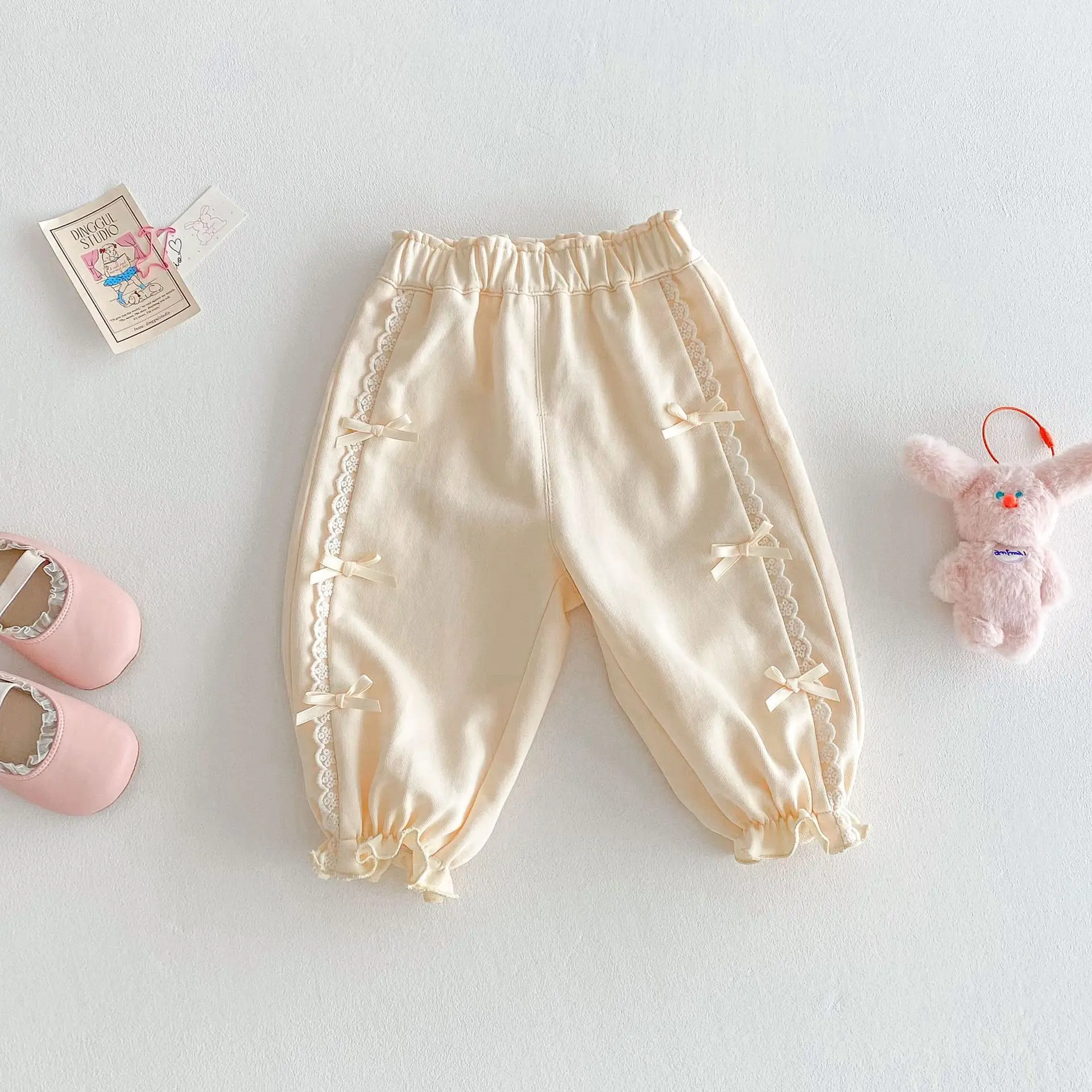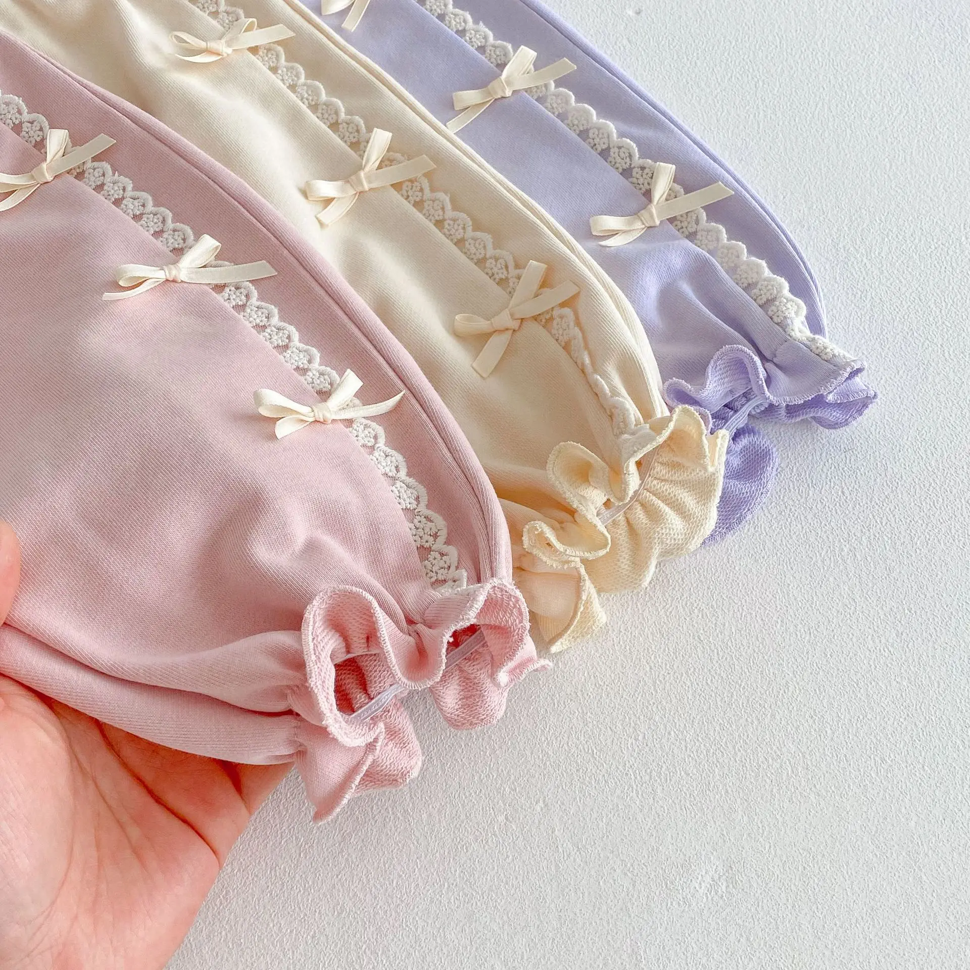 2025 Spring Baby Girls Pants Toddler Loose Bloomers 0-5Year Kids Girls Bows Casual Trousers
