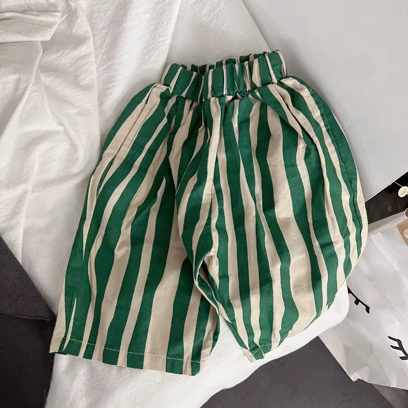 2025 Spring Boy Girl Children Loose Striped Casual Pants Baby Pockets Fashion Pants Kid Outdoor Cotton Trousers Toddler Costume