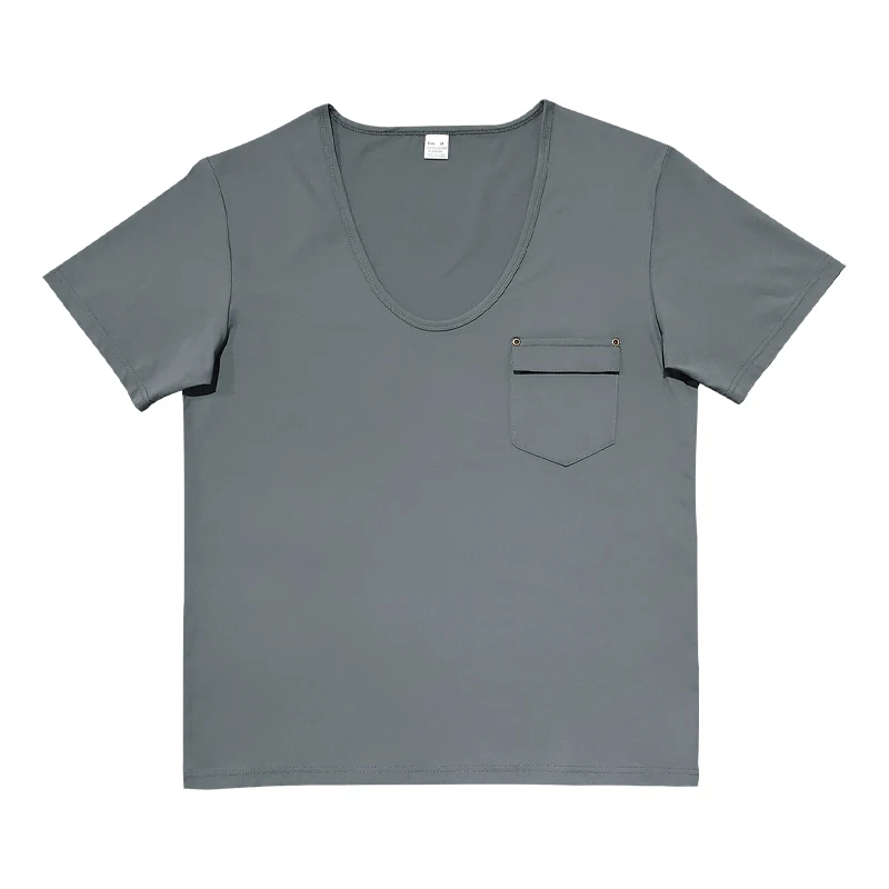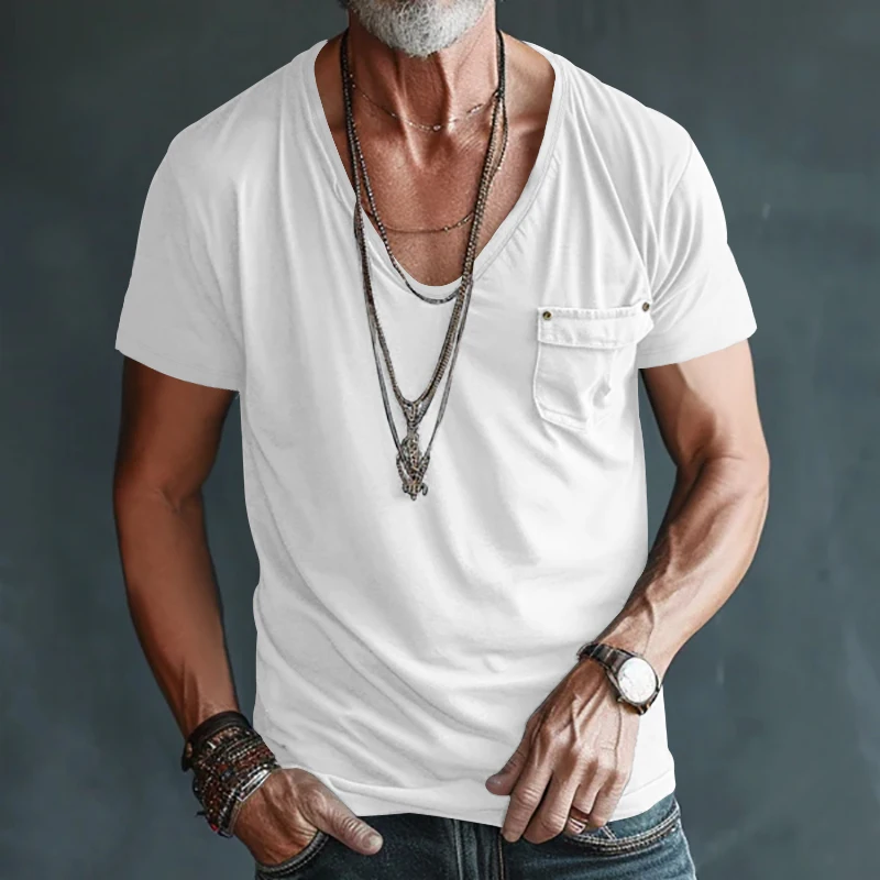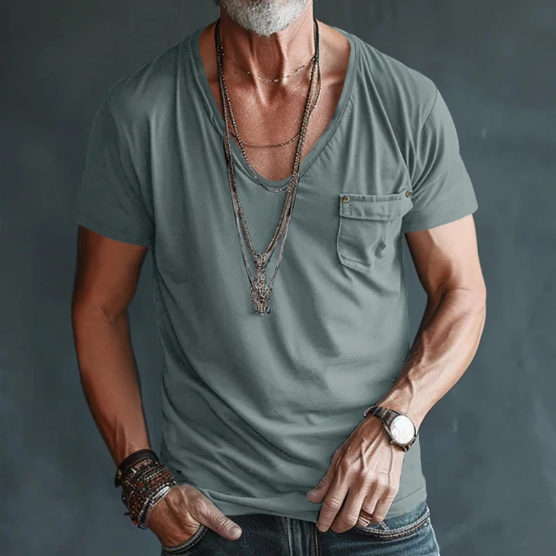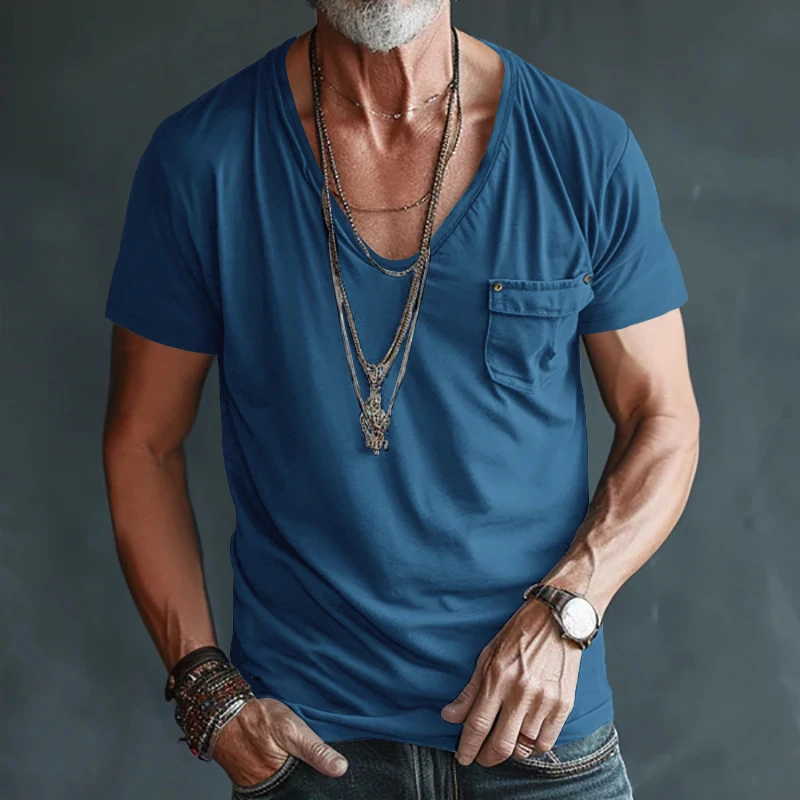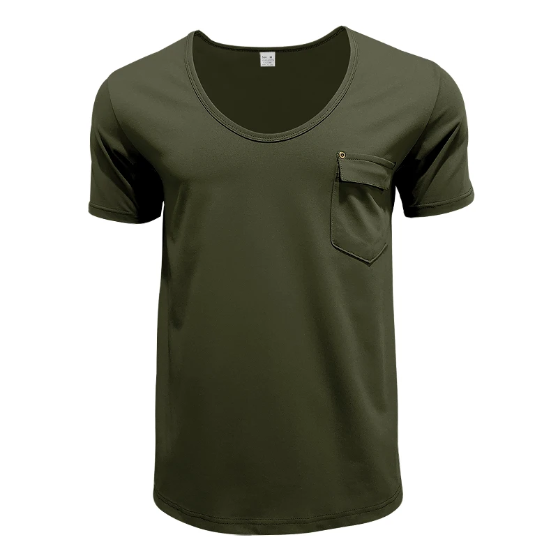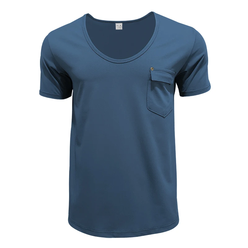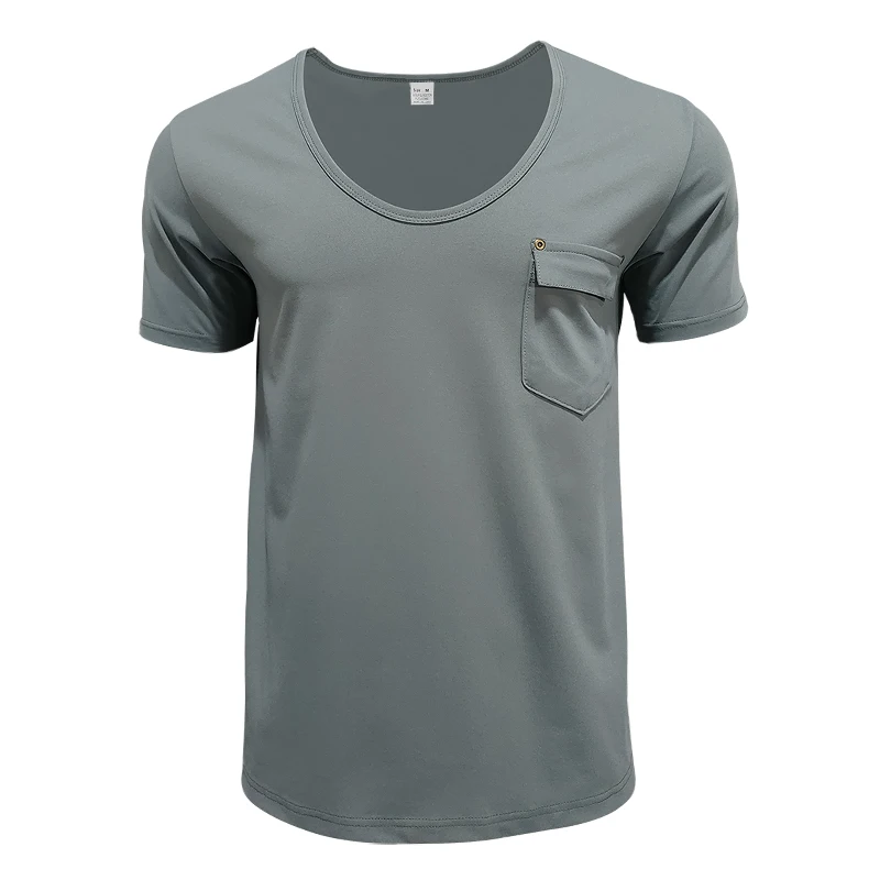 2025 Summer Fashion Men’s Slim Fit U-neck T-shirt Casual Versatile Solid Color Henry Shirt Short sleeved Men’s
