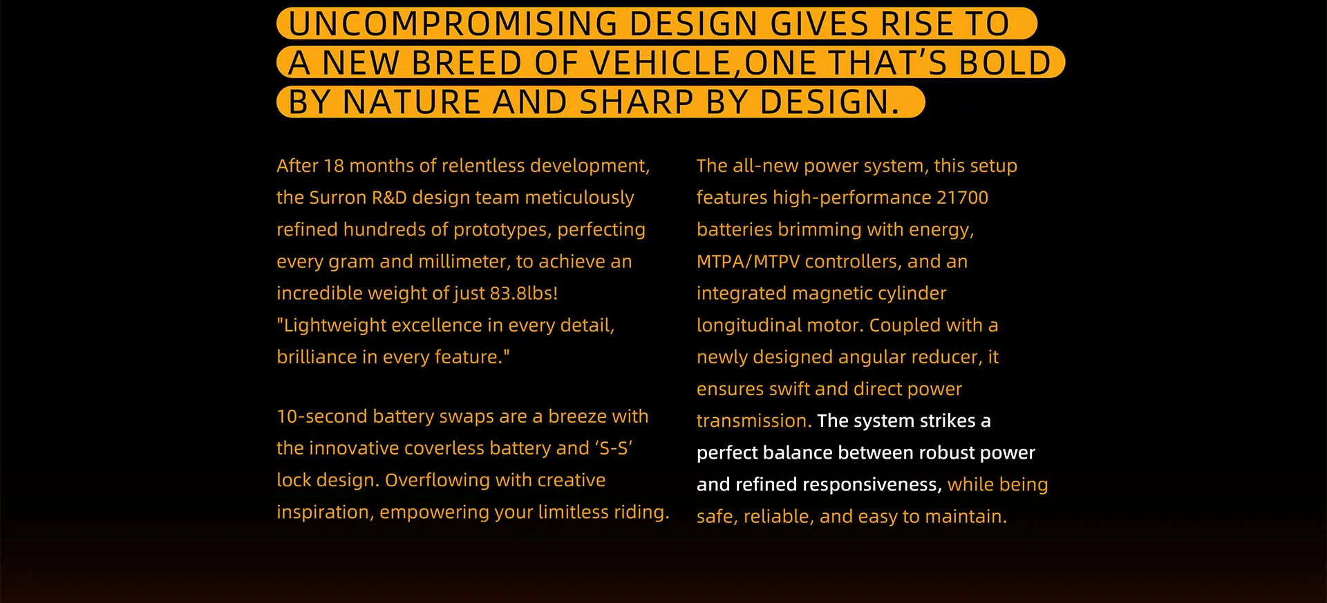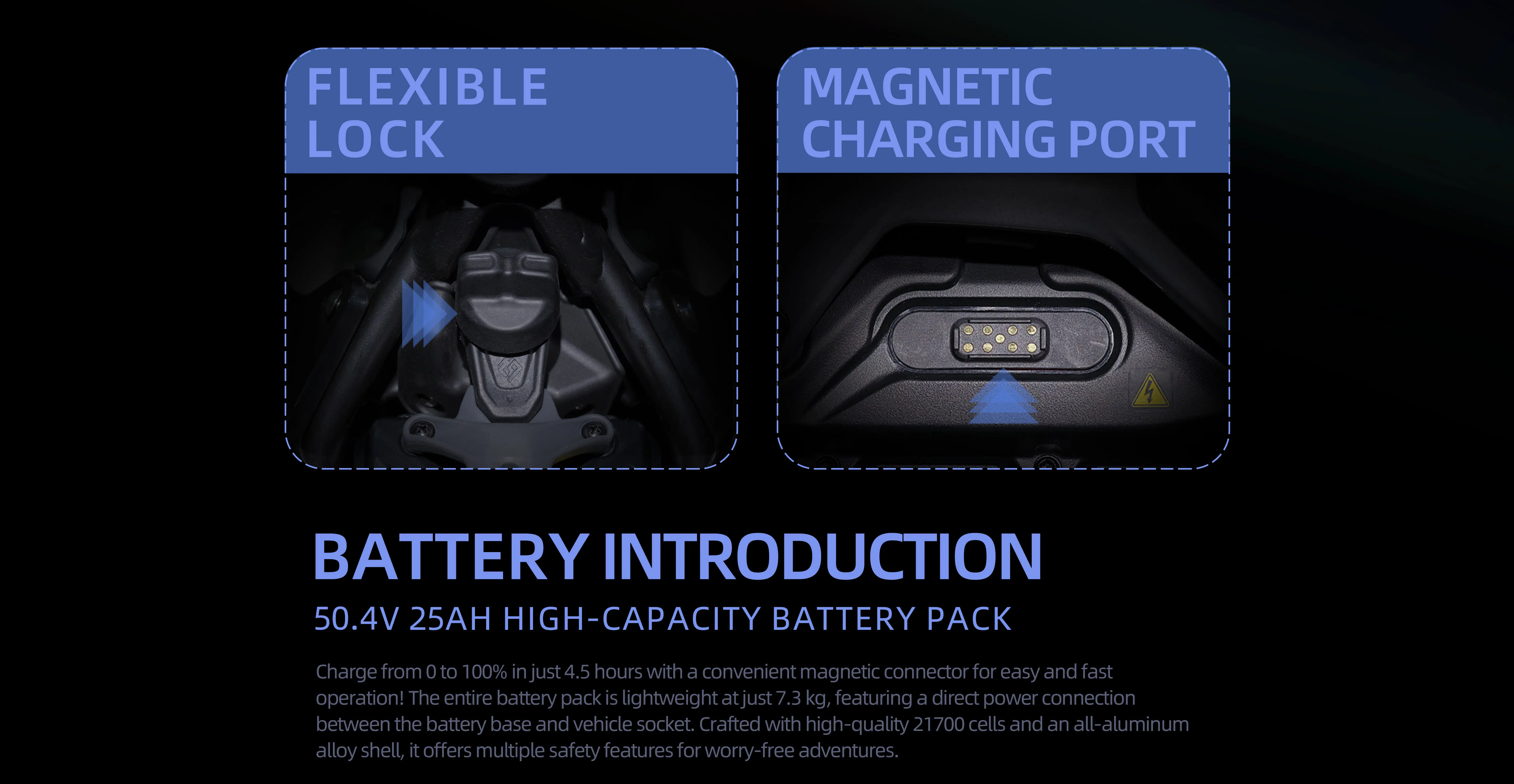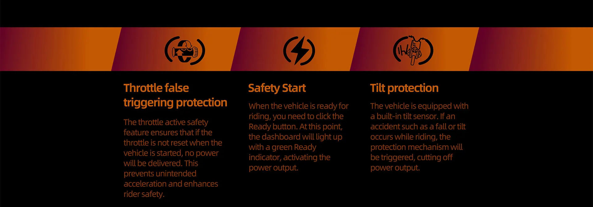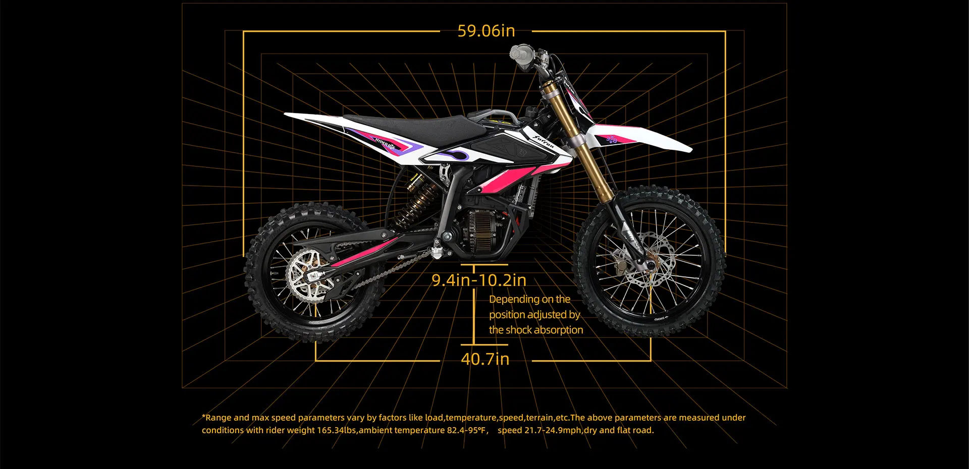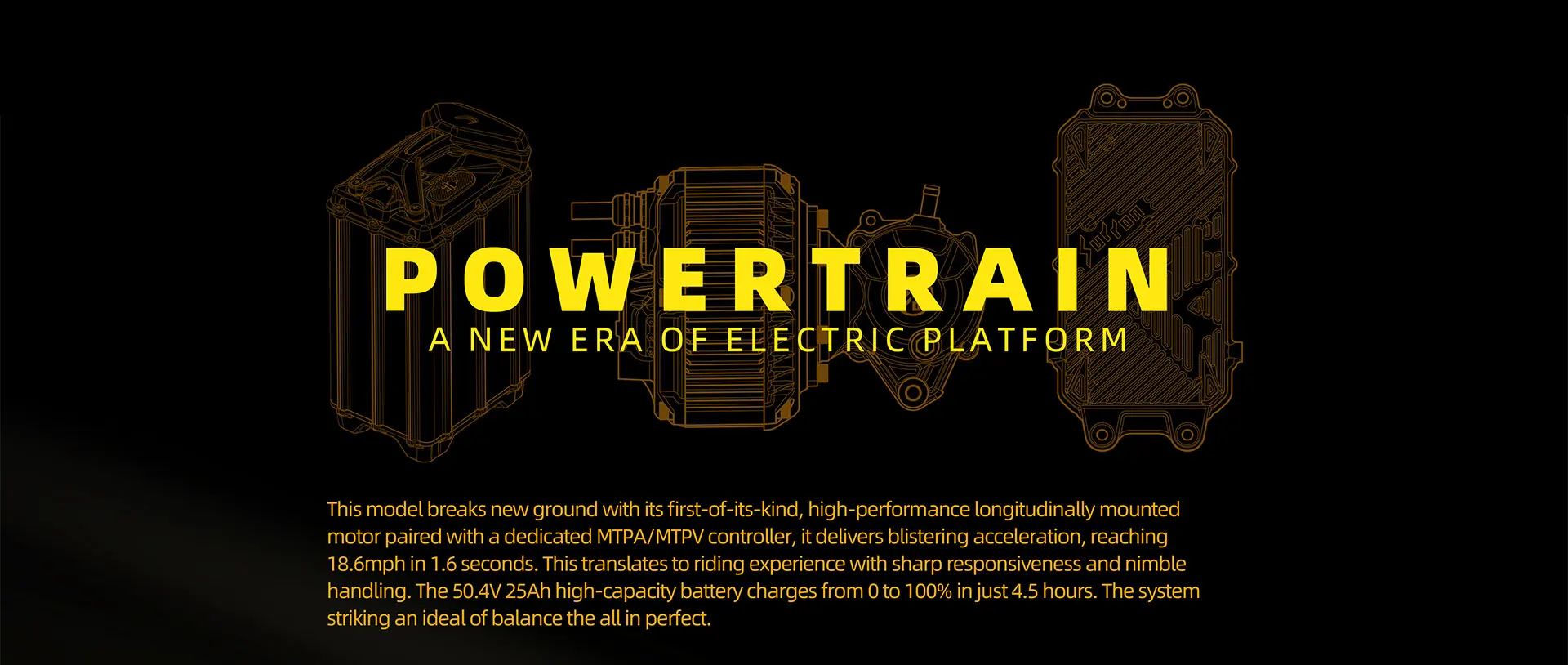 *Range and max speed parameters vary by factors like load,temperature,speed,terrain,etc.The above parameters are measured under conditions with rider weight 165lbs,ambient temperature 28-35℃,speed @25mph,dry and flat road.