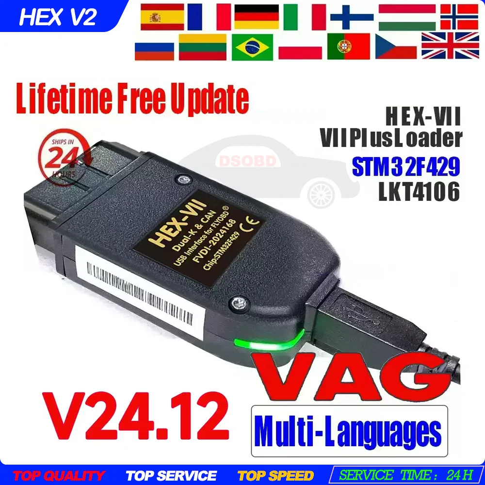 2025 Unlimited Vins VCDS VAGCOM Interface VCDSCAN HEX V2 Update 24.12 FOR VW AUDI Skoda Seat Multi-Language Car Diagnostics To