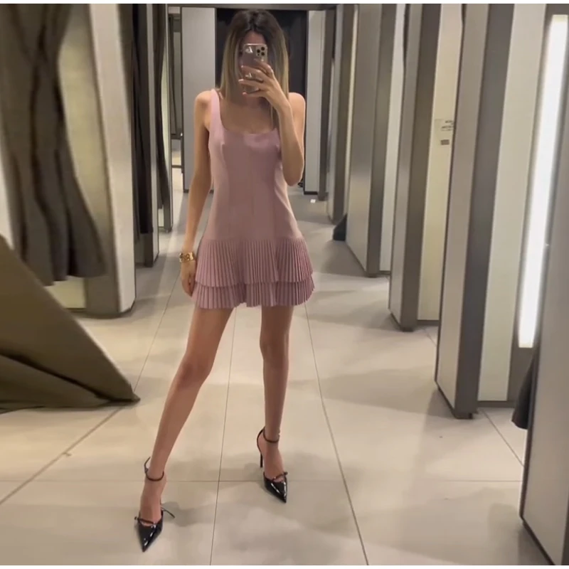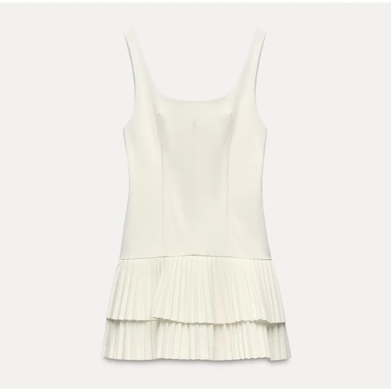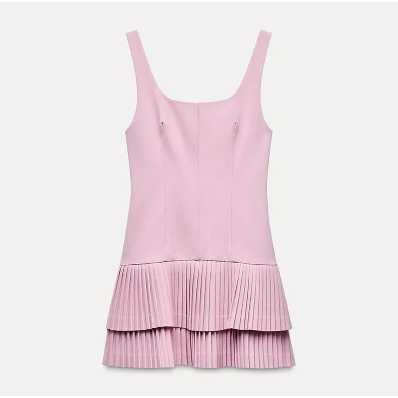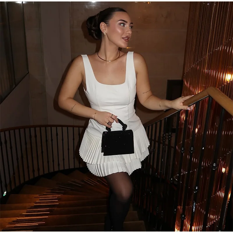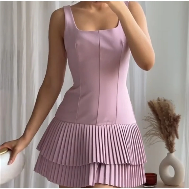 2025 Women Layered Ruffle Hem Tank Dress Square Neck Sleeveless Pleated Short Dresses Spring Summer New Street Lady Vestidos