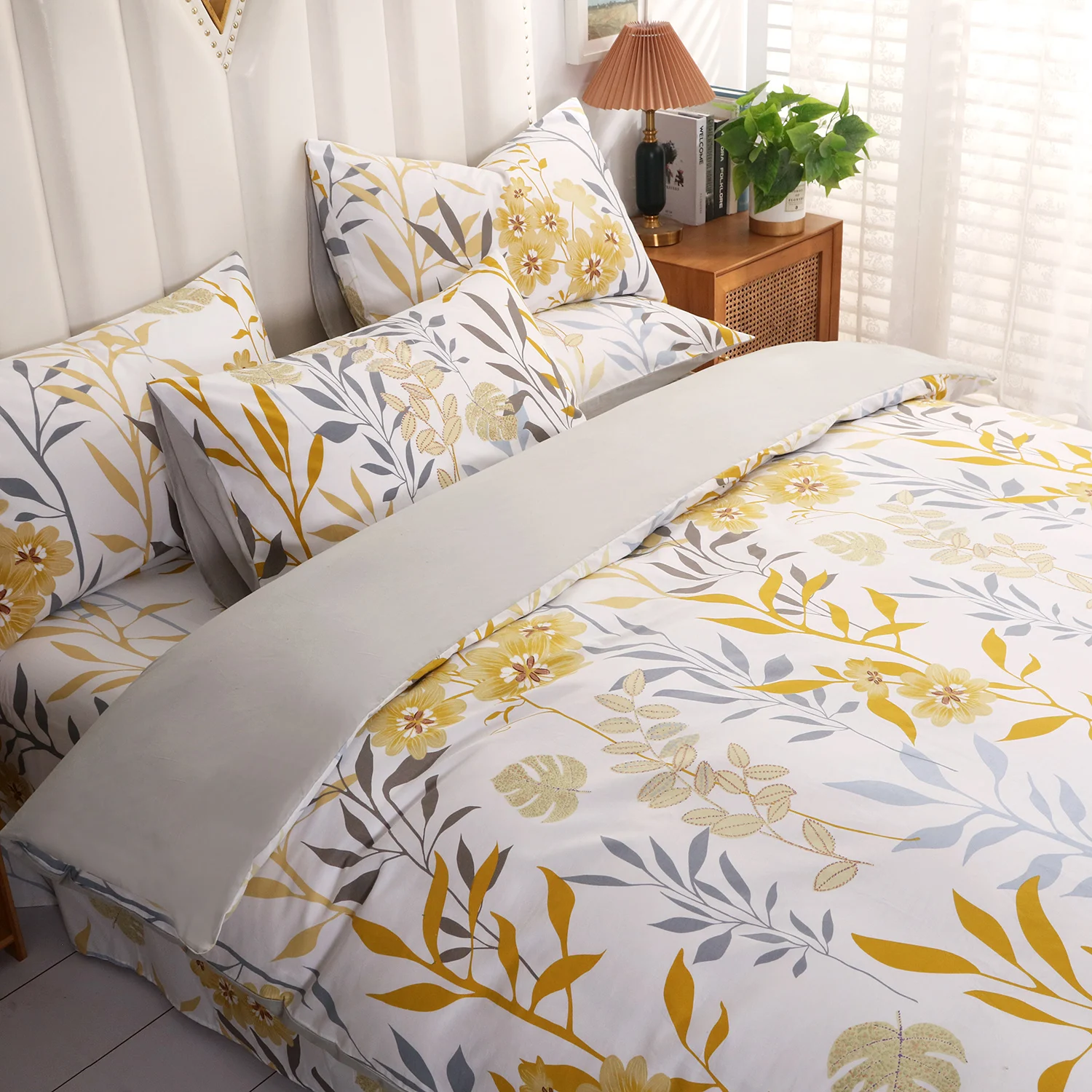 205TC 100% cotton flower leaf plant printed duvet set, set of 3 sets (1 duvet cover + 2 pillowcases) without quilts/padding + be