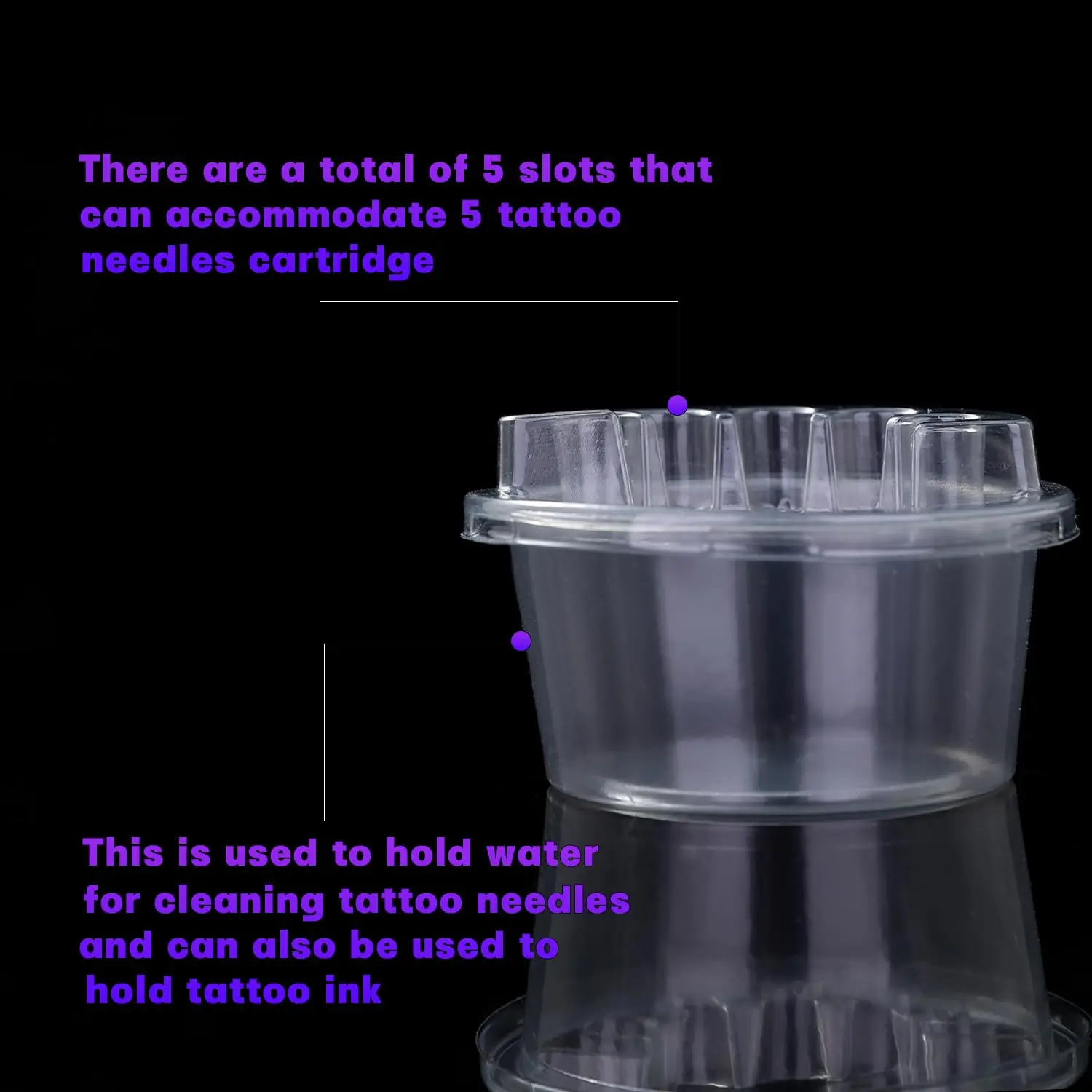 20PCS Disposable Tattoo Cartridge Cup Holder Plastic Tray For Tattoo Inks Needle Holder Transparent Stand Ink Cleaning Cup