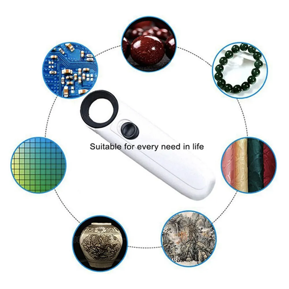 21mm 40X Illuminated Handheld Magnifier LED Light Magnifying Glass Jewelry Loupe Eye Lens Watch Repair Tool For Circuit Boards