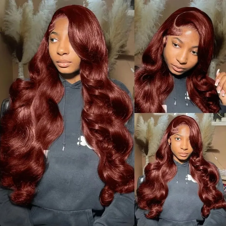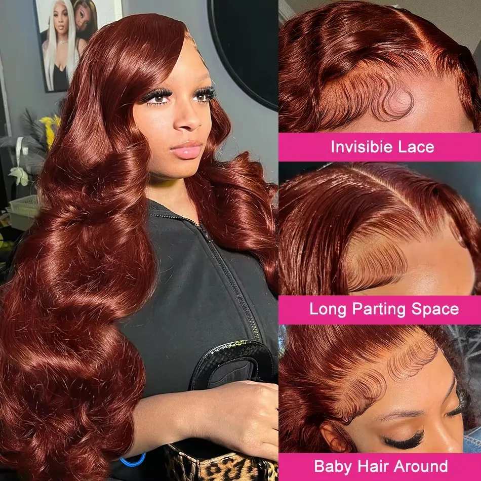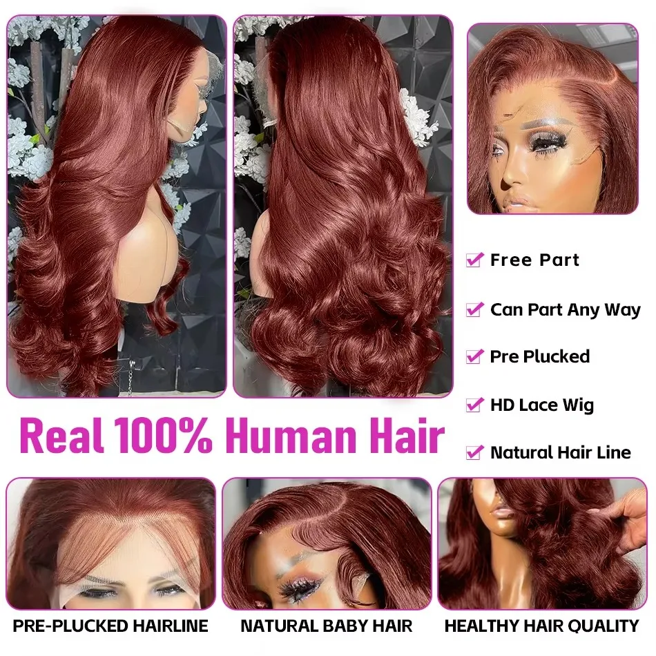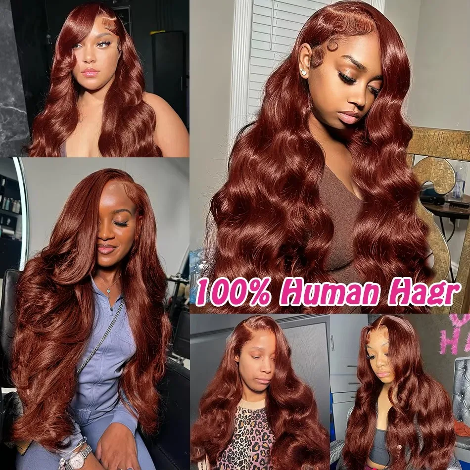 220% Brazilian Reddish Brown 13×6 HD Lace Frontal Wig Transparent 13×4 Lace Front Wigs Human Hair Water Wave Colored Human Hair