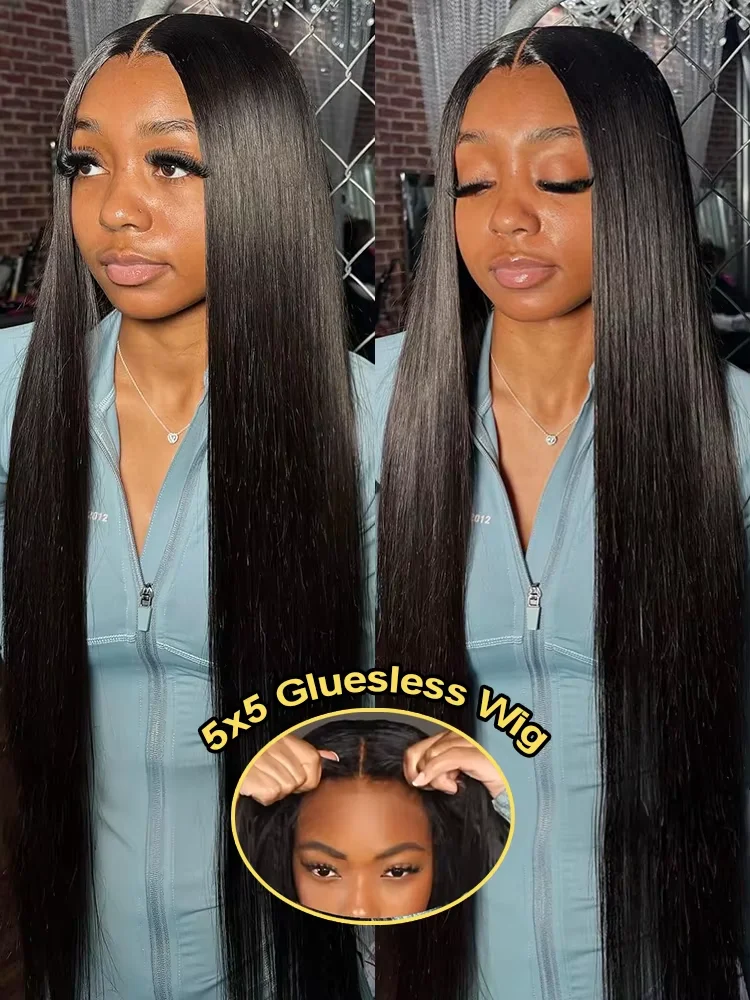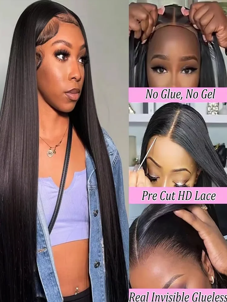 230 Density Bone Straight 30 36 Inches Human Hair Pre plucked Ready Wear and Go Glueless Wig 5X5 Lace Closure Wig For Women