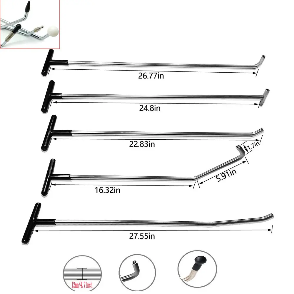 23Pcs Paintless Dent Removal Black Push Rod Car Body Repair Tool Automotive Sheet Crowbar With Metal Replaceable Head Kit