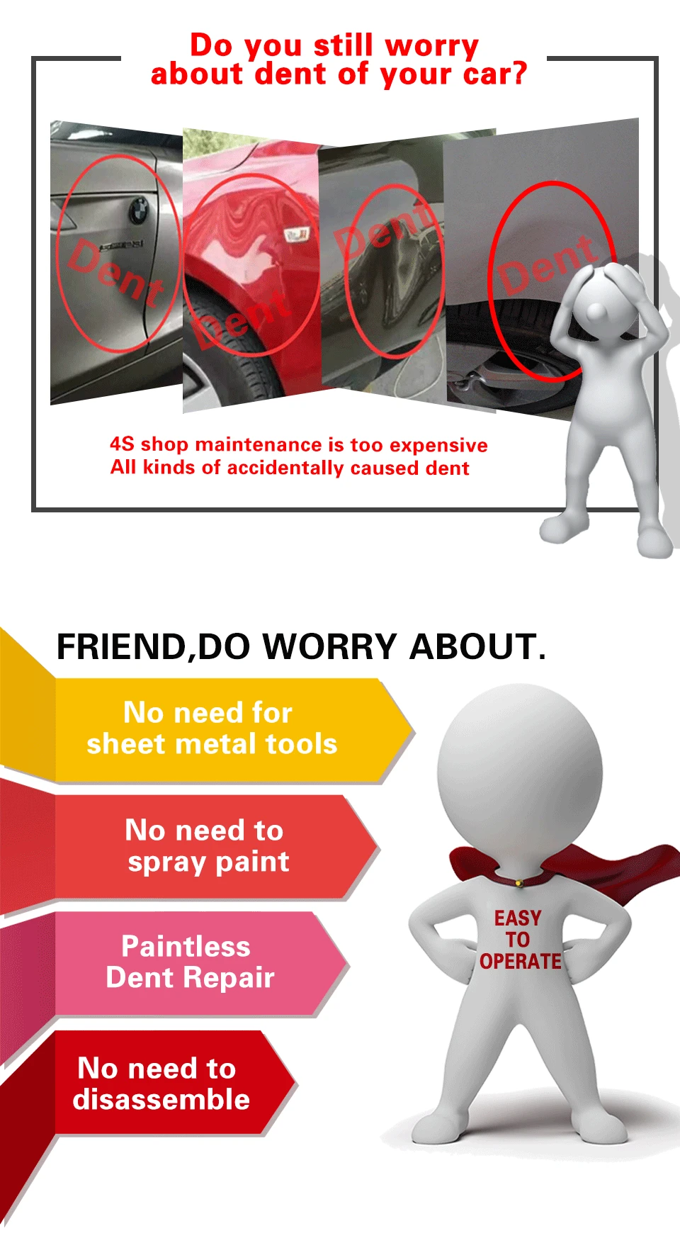 This dent repair Tool has 5 type of rods and 17 pcs Head which are suitable for many applications, whatever automobile, refrigerator or other sheet mental processing, all can be perfectly used on.