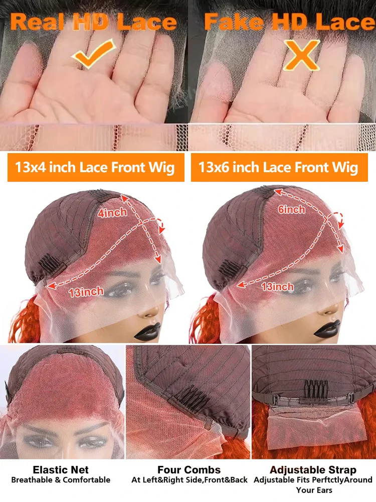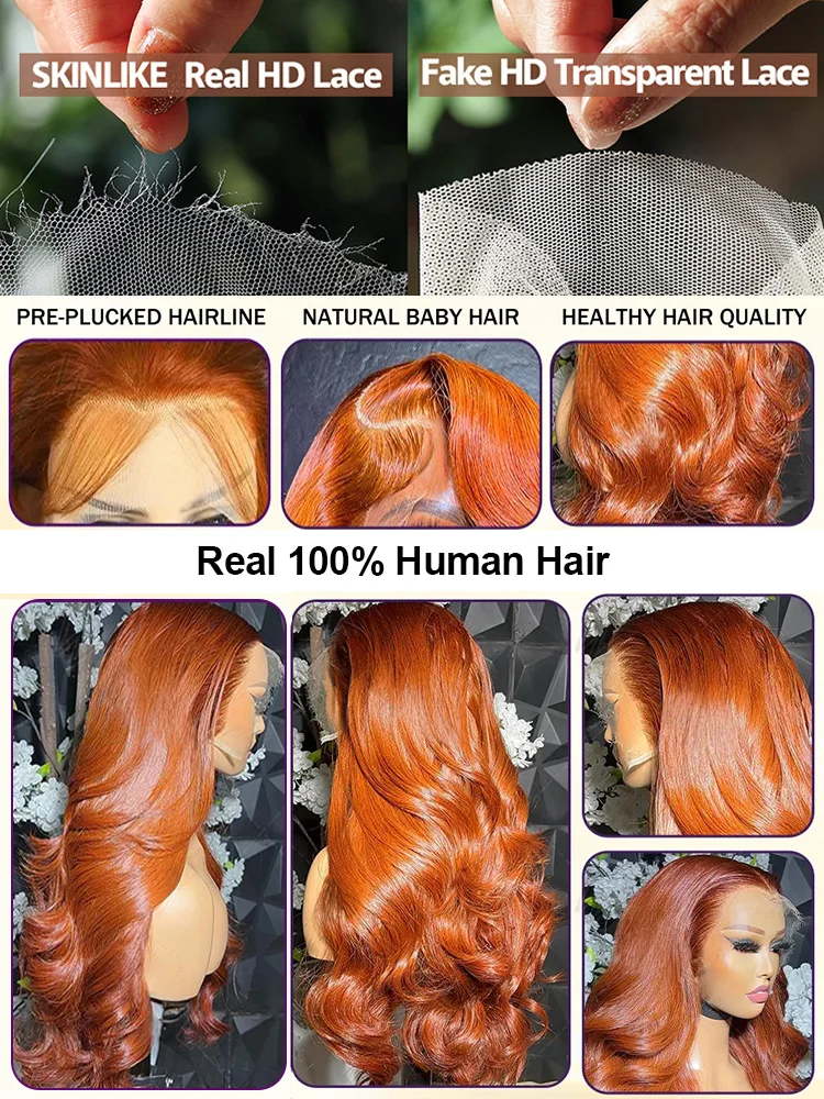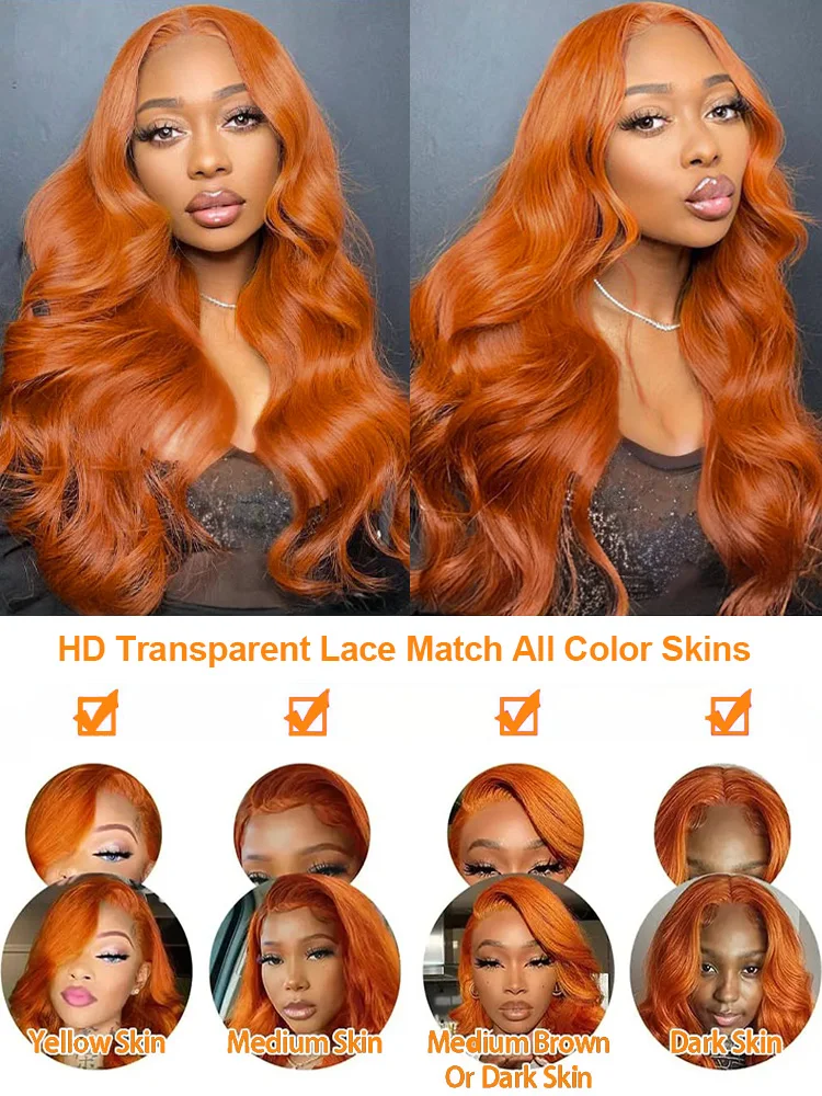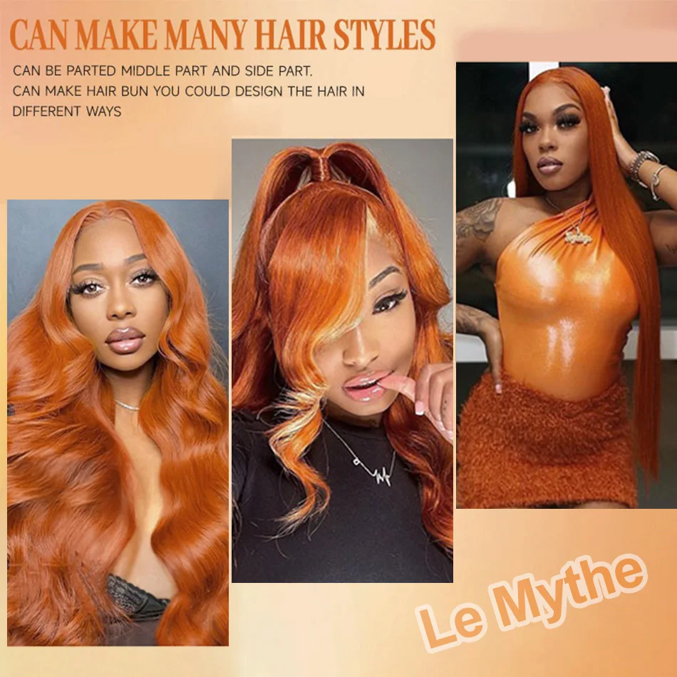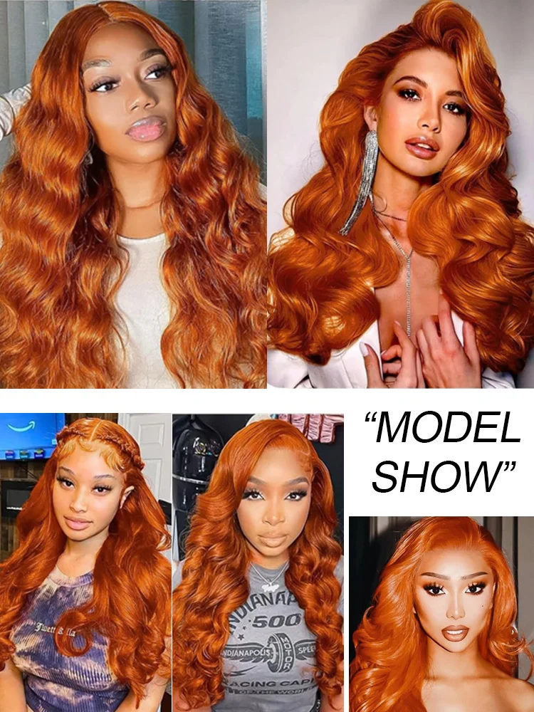 250 Density 350 Ginger Body Wave 30 40 Inch 13×4 Lace Front Wig Orange 13×6 Human Hair Lace Frontal Wigs Brazilian HD Water Wave