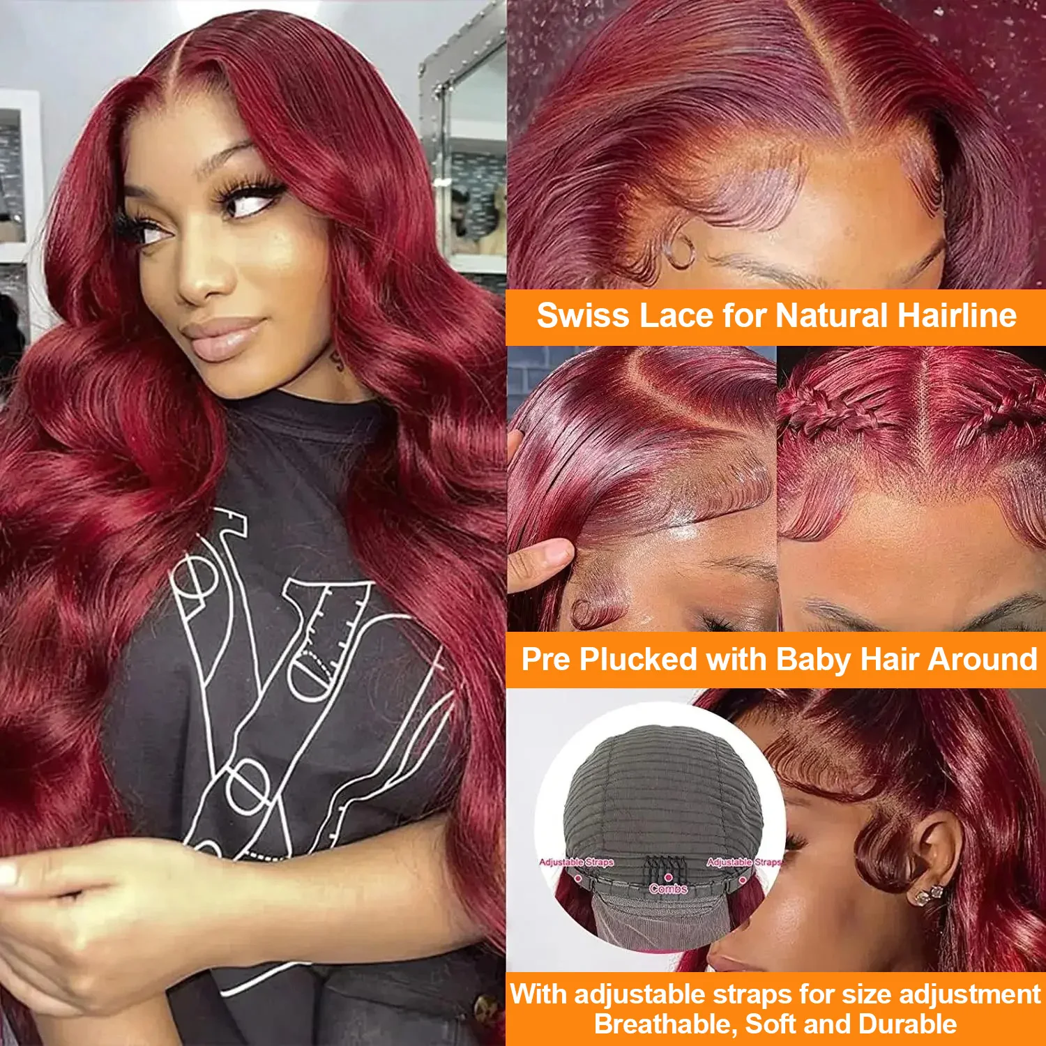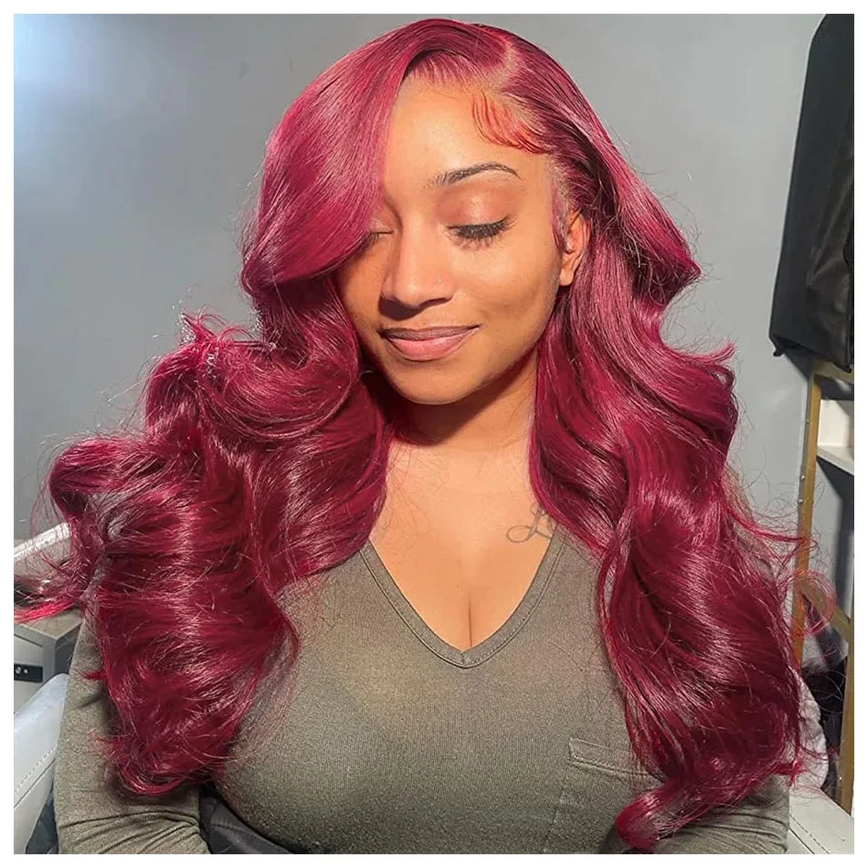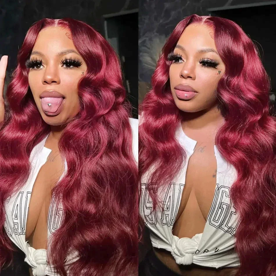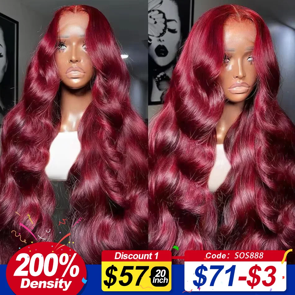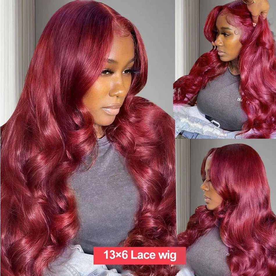 250 Density Burgundy 13×6 HD Lace Frontal Wigs 99J Body Wave HD Water Wave 13×4 Lace Front Human Hair Brazilian 30 40 Inch Wine