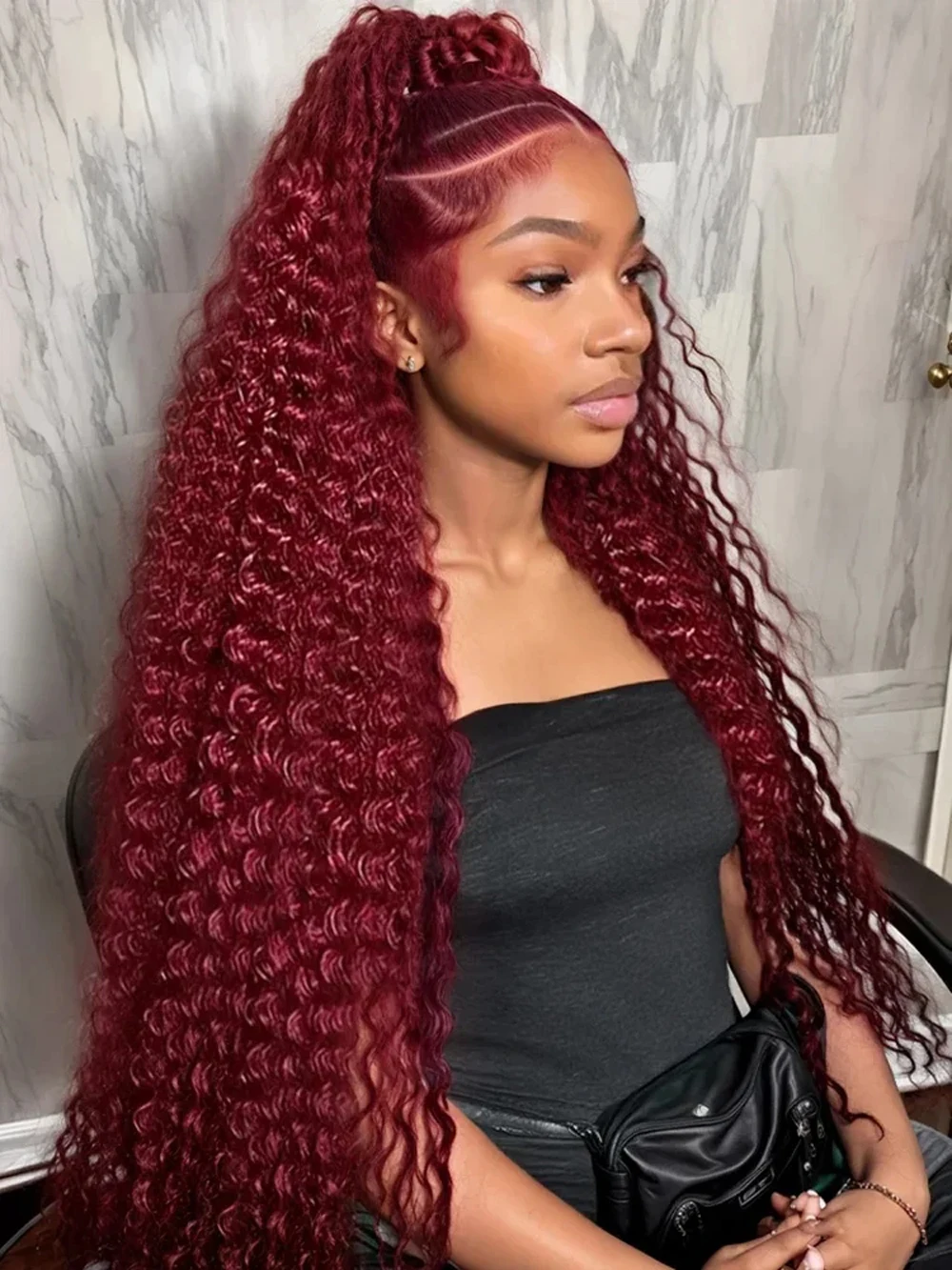 250 Density Deep Wave 99J Burgundy 13×4 Lace Frontal Wig Human Hair 13×6 Curly 30 40 Inch HD Lace Front Wigs Red Wine Water Wave