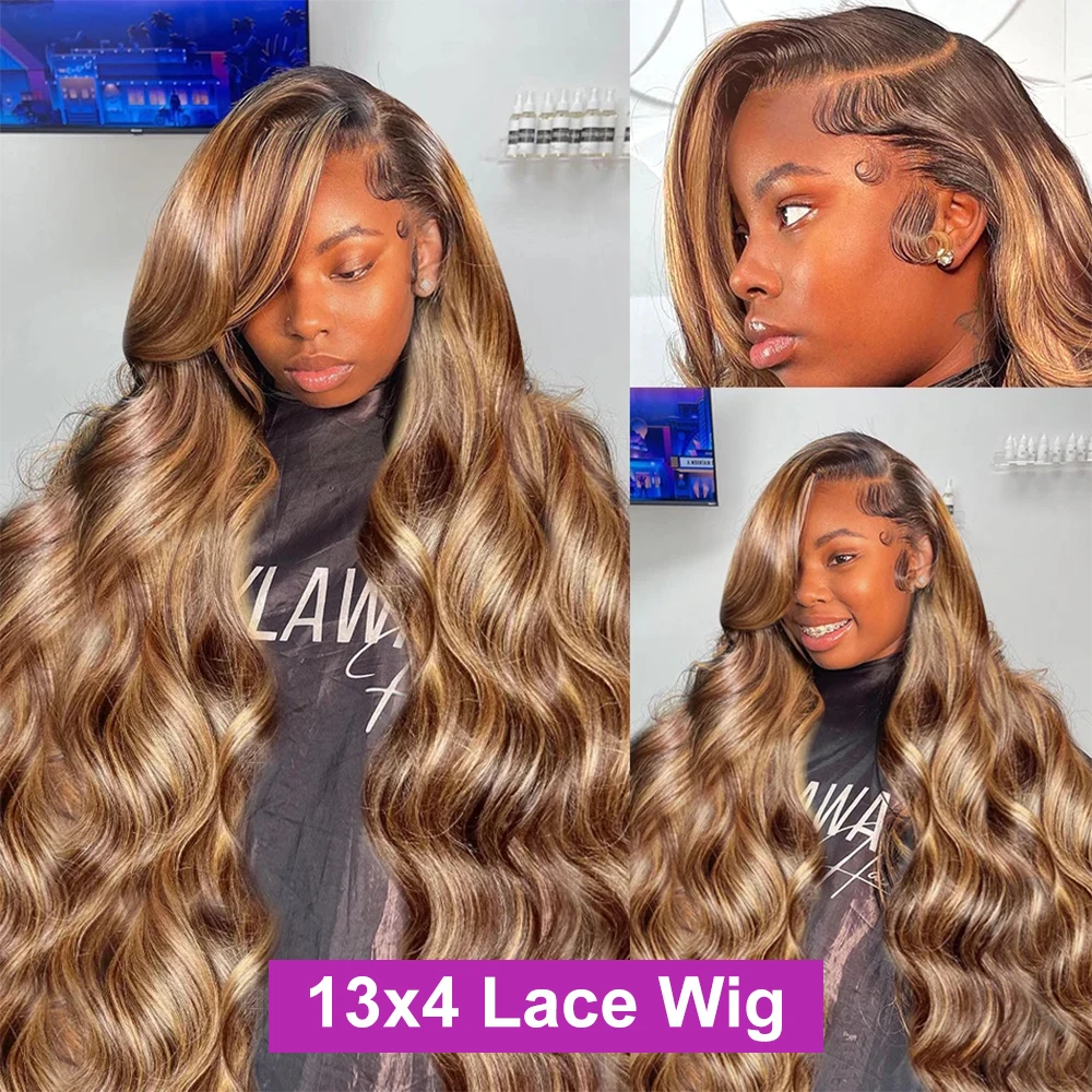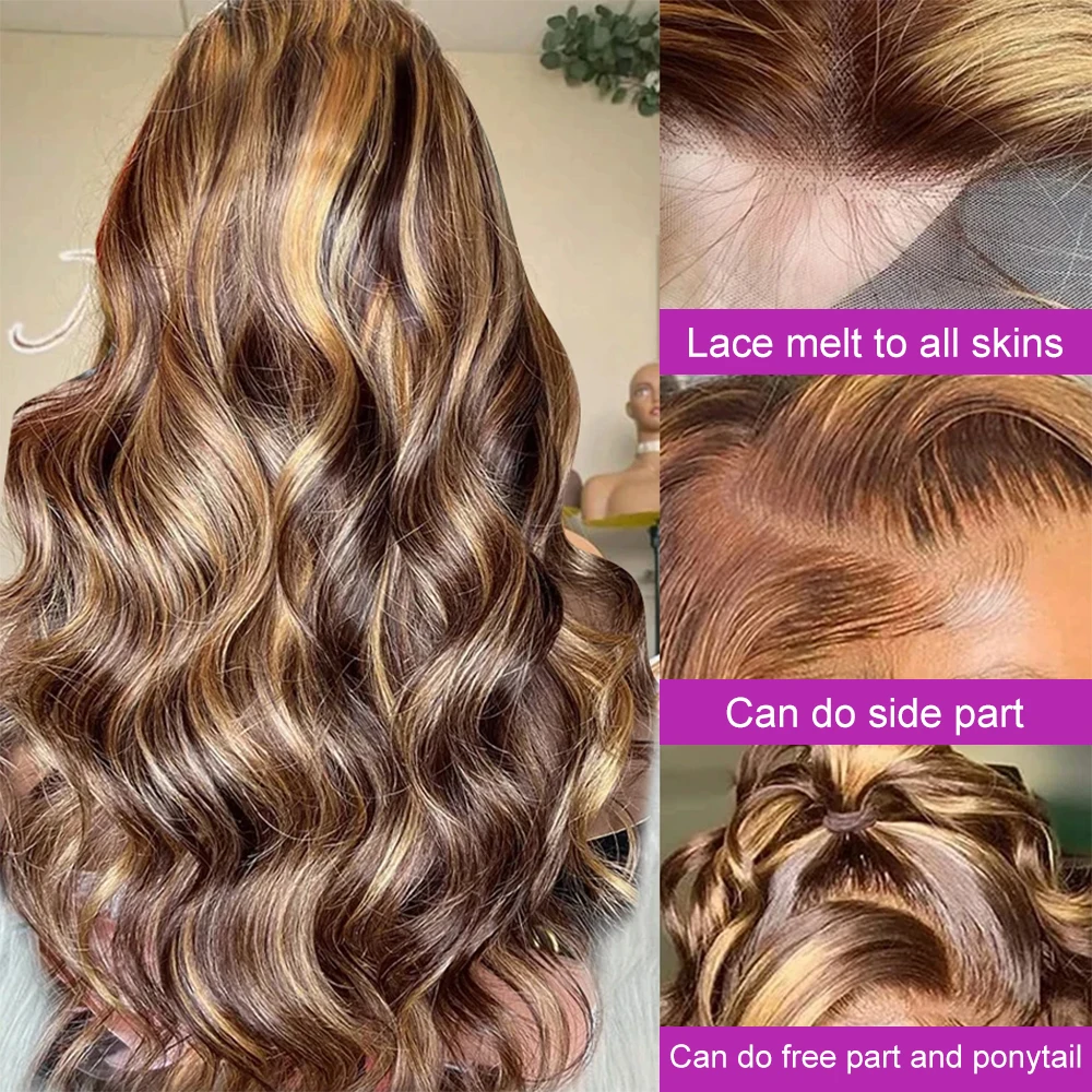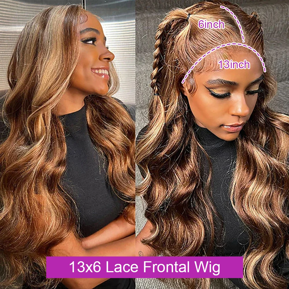250 Density Ombre Brown Highlight Water Wavy 40Inch 13×6 Hd Lace Frontal Wig Blonde Body Wave Glueless Lace Front Human Hair Wig