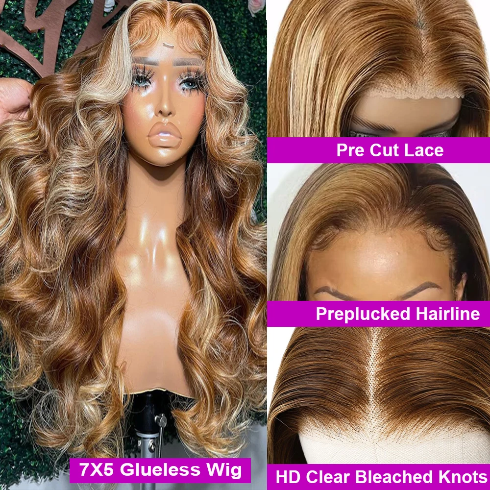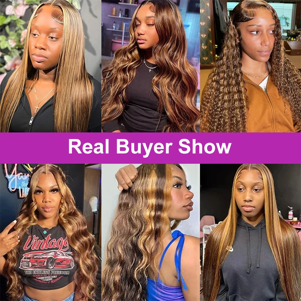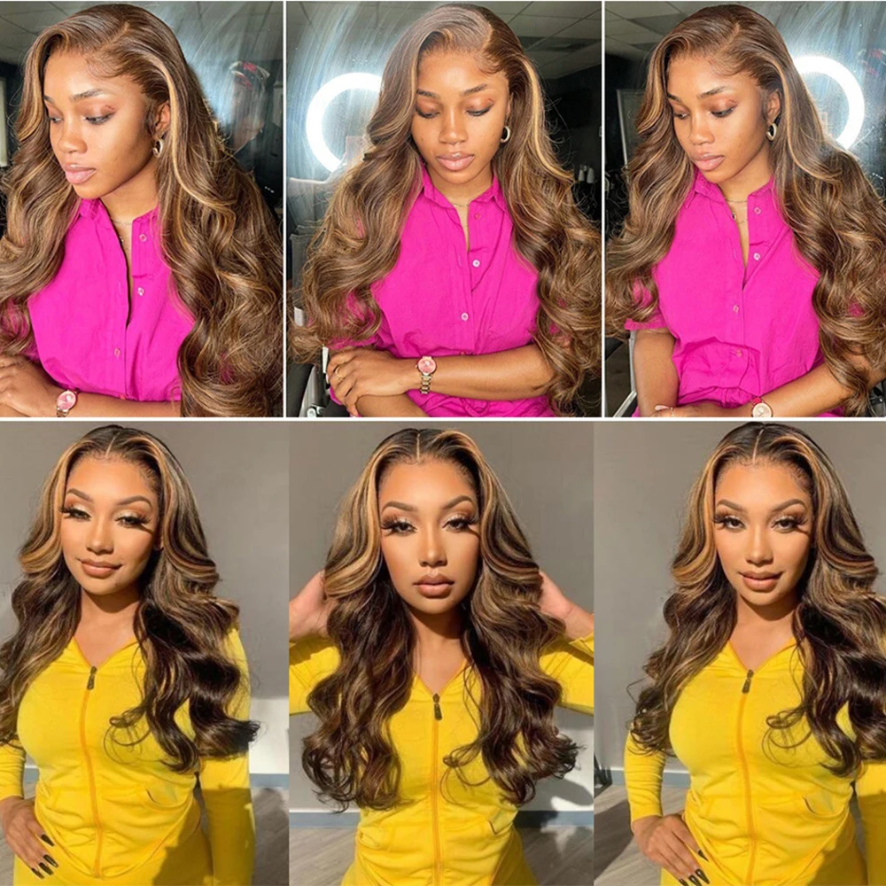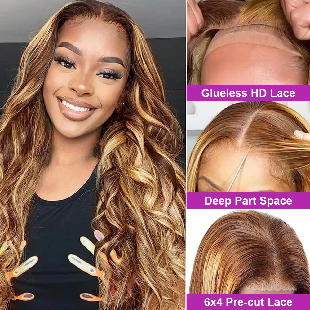 250 Density Ombre Brown Highlight Water Wavy 40Inch 13×6 Hd Lace Frontal Wig Blonde Body Wave Glueless Lace Front Human Hair Wig
