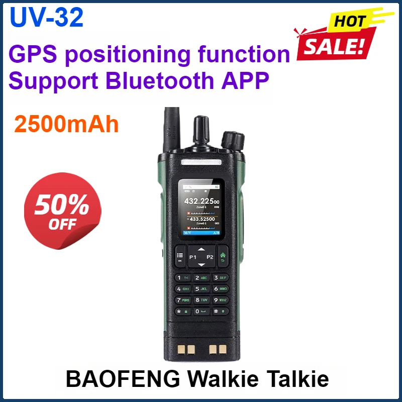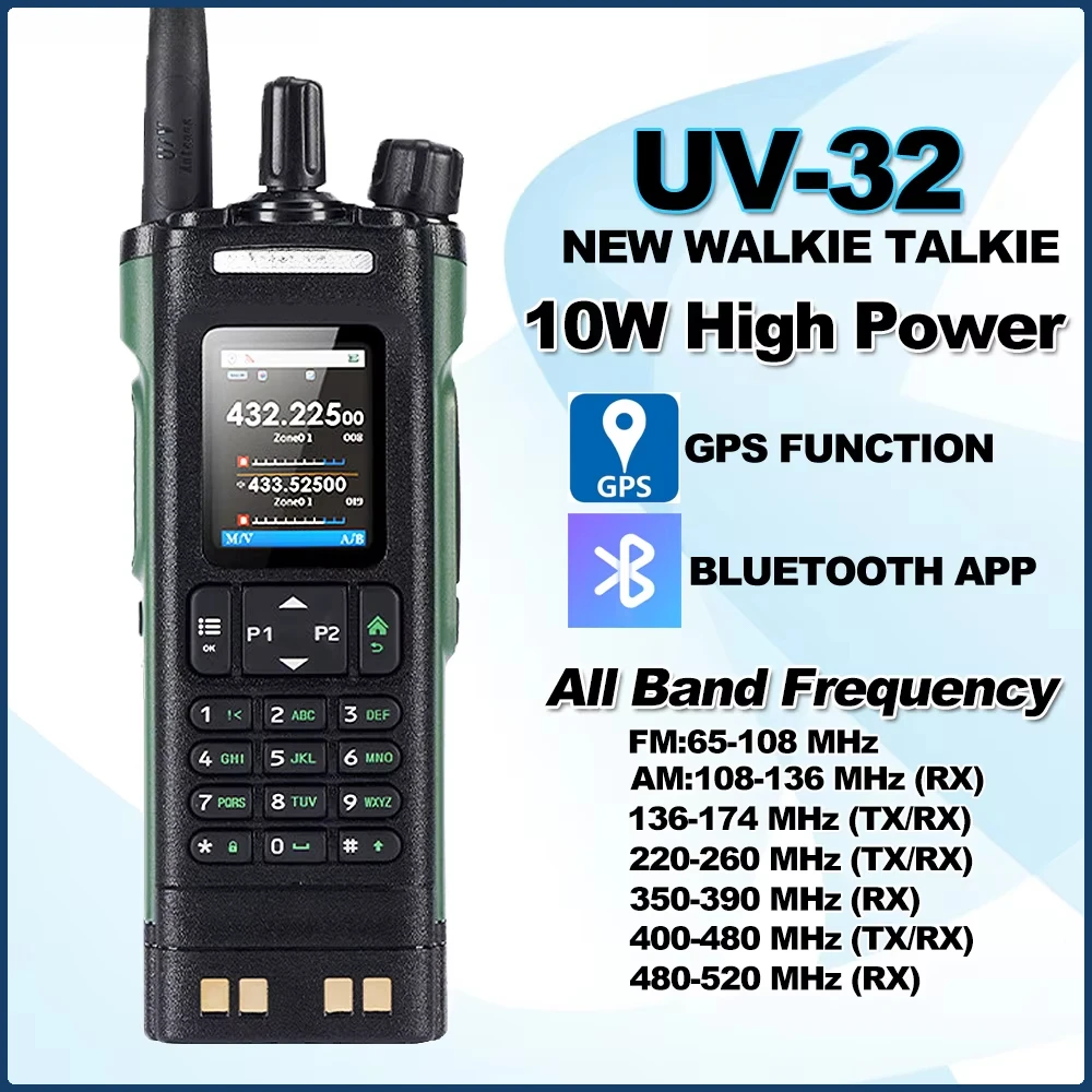 2500mAh BAOFENG UV-32 New Walkie Talkie GPS 10W Tri-mode Full Band Two Way Radios Support Bluetooth APP One Clik Copy Frequency