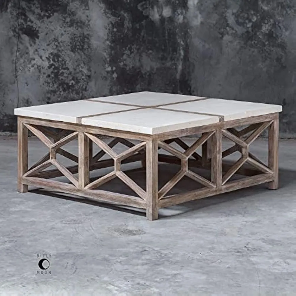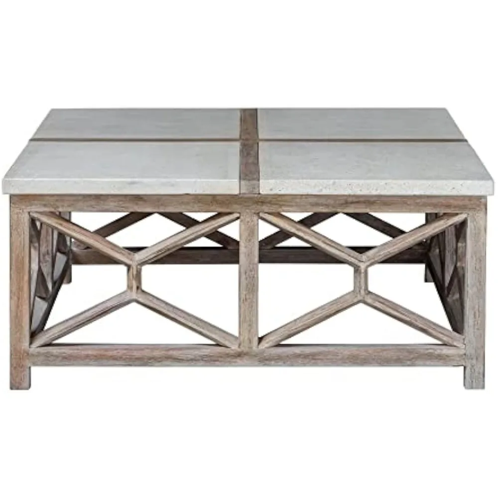 Farmhouse Round Coffee Table Set of 2, Rustic Sofa Side Tea Tables w/Wood Finish, Metal Frame, Adjustable Foot Pads,